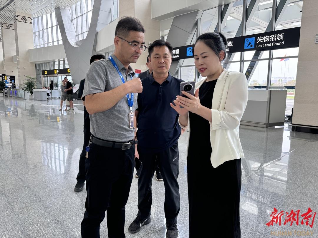 金建平(右一)在怀化芷江机场调研旅游市场及服务。通讯员 杨洋 摄