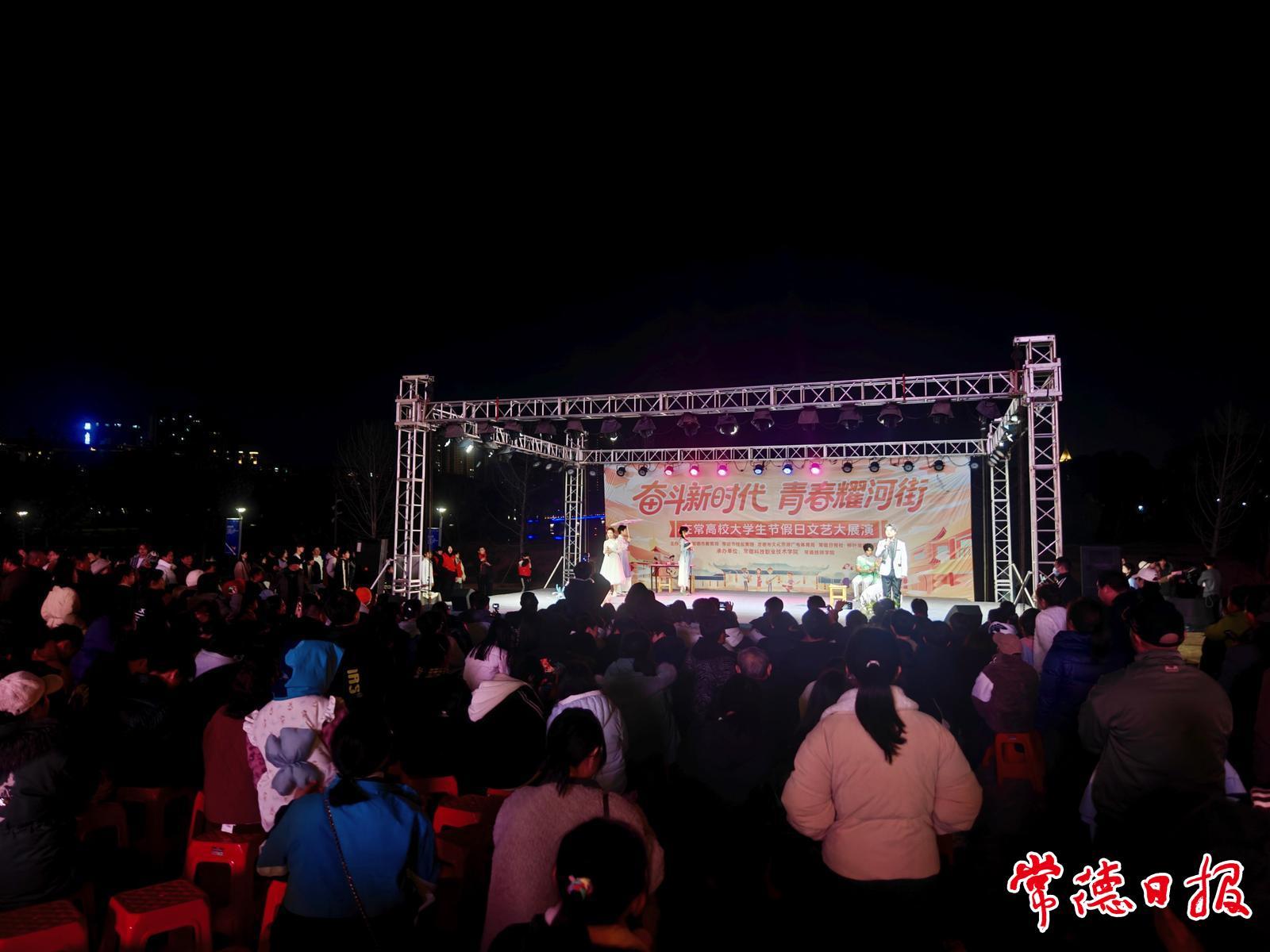 常德日报记者 姚璇 /文 江一舟/图 1月9日晚,华灯初上,常德河街西街汉诺威广场人声鼎沸。“奋斗新时代青春耀河街”在常高校大学生节假日文艺大展演——常德科技职业技术学院与常德技师学院专场在此活力上演。这不仅是一场精心编排的文艺晚会,更是两校学生社团学习成果与青春风采的一次集中展示。