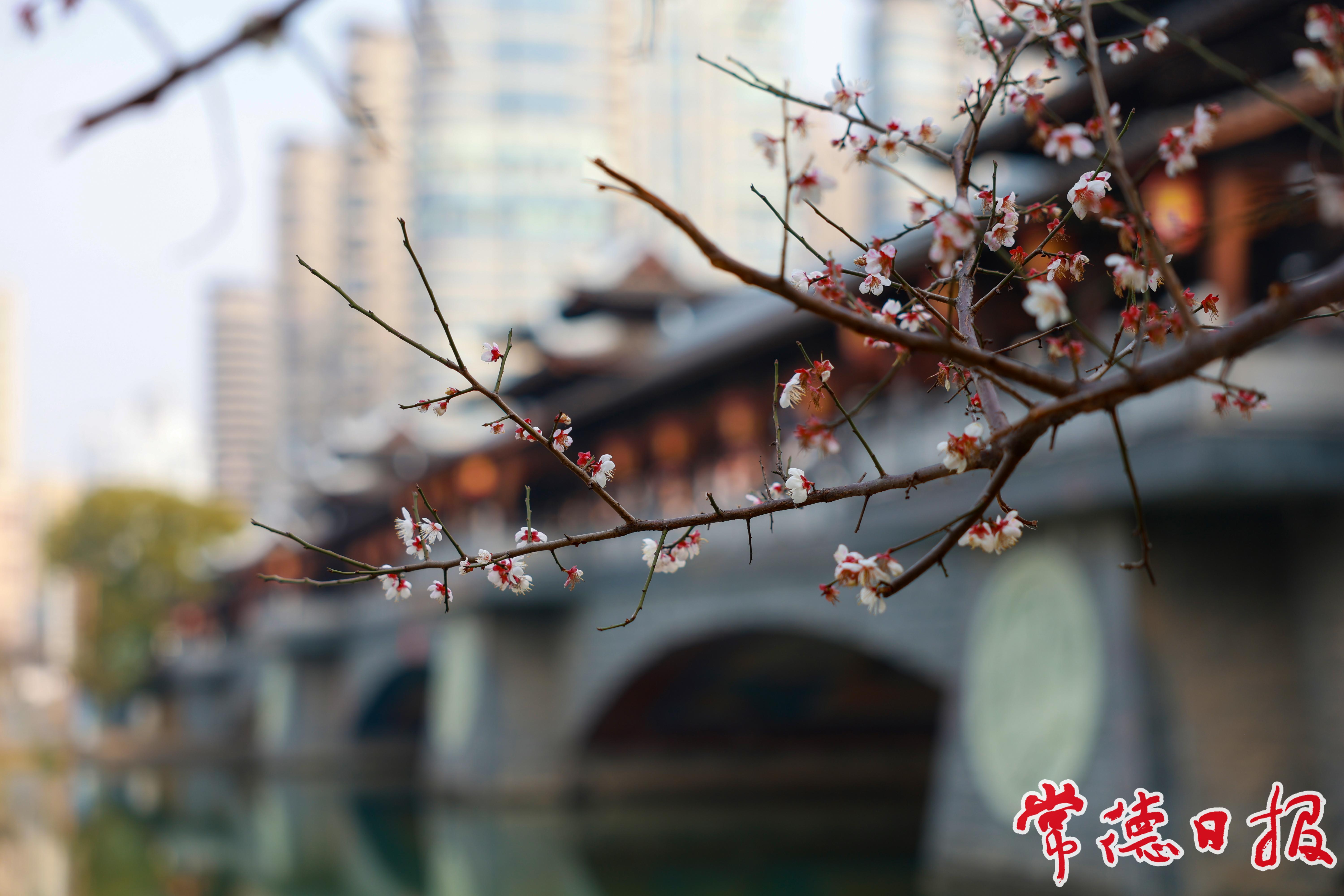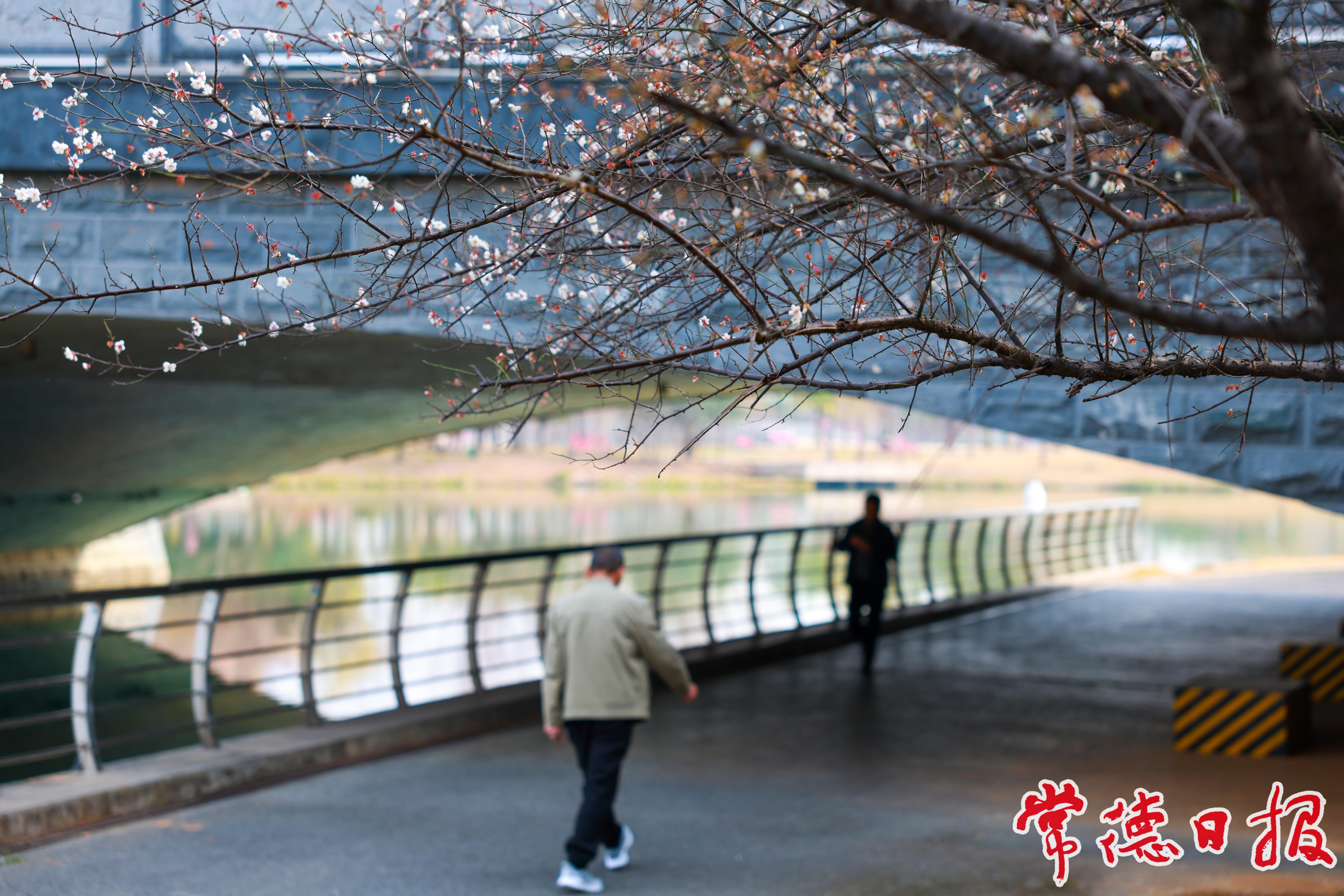 1月12日,常德市城区穿紫河畔的七里桥边,梅花悄然绽放、暗香浮动,吸引着过往行人驻足欣赏。据了解,常德市从2004年开始系统整治穿紫河,2015年成为全国首批海绵城市建设试点城市,如今,穿紫河两岸已成为市民休闲娱乐的好去处。闲暇时分,市民漫步于七里桥边,既能欣赏梅韵芳姿,又能感受河清水绿的生态之美,惬意十足。常德日报记者 蔡文龙 摄影报道