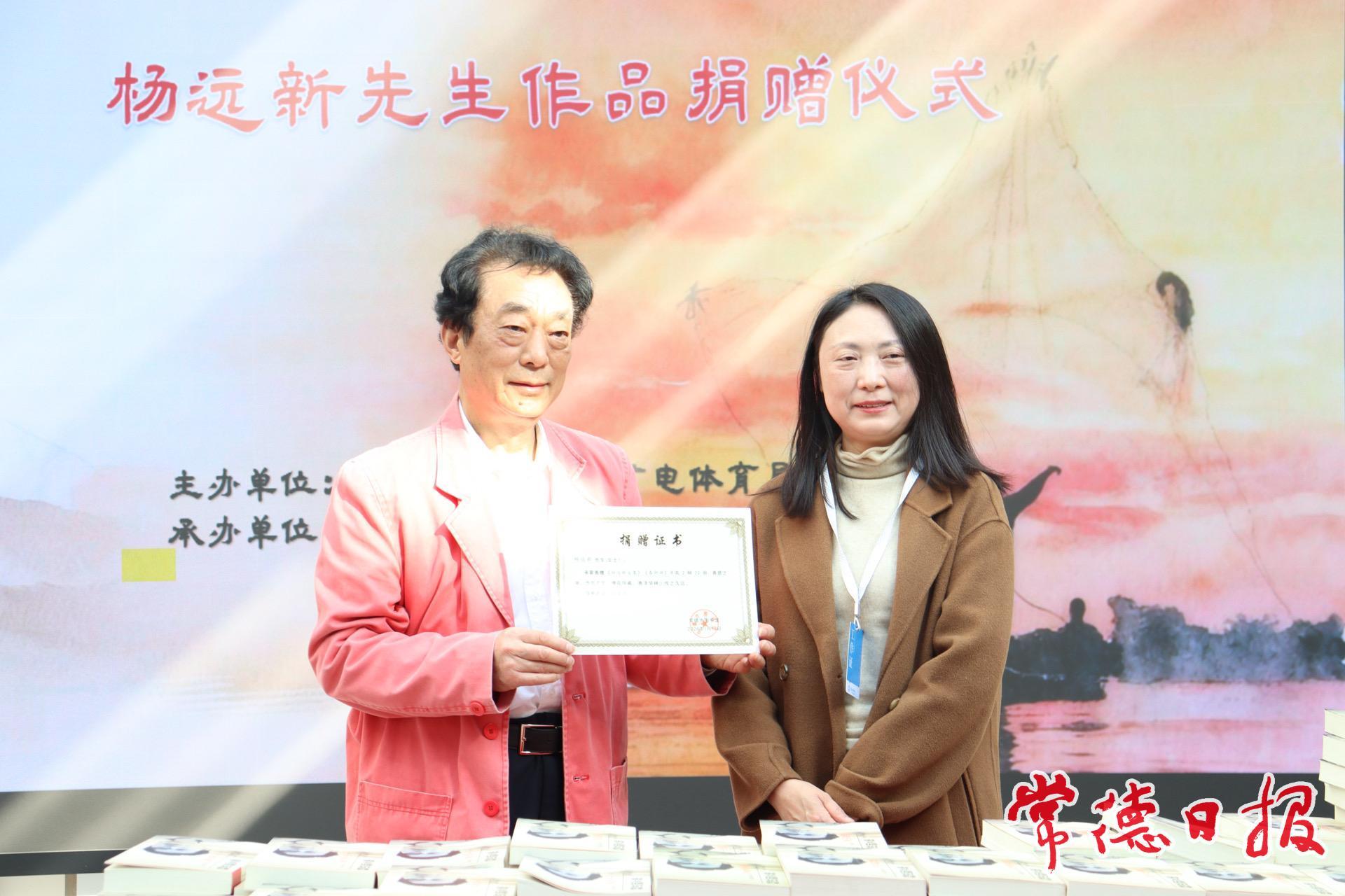 在与会领导与嘉宾的共同见证下,常德市图书馆负责人代表馆方接受了这份沉甸甸的文化厚礼,并向杨远新先生颁发了捐赠证书。