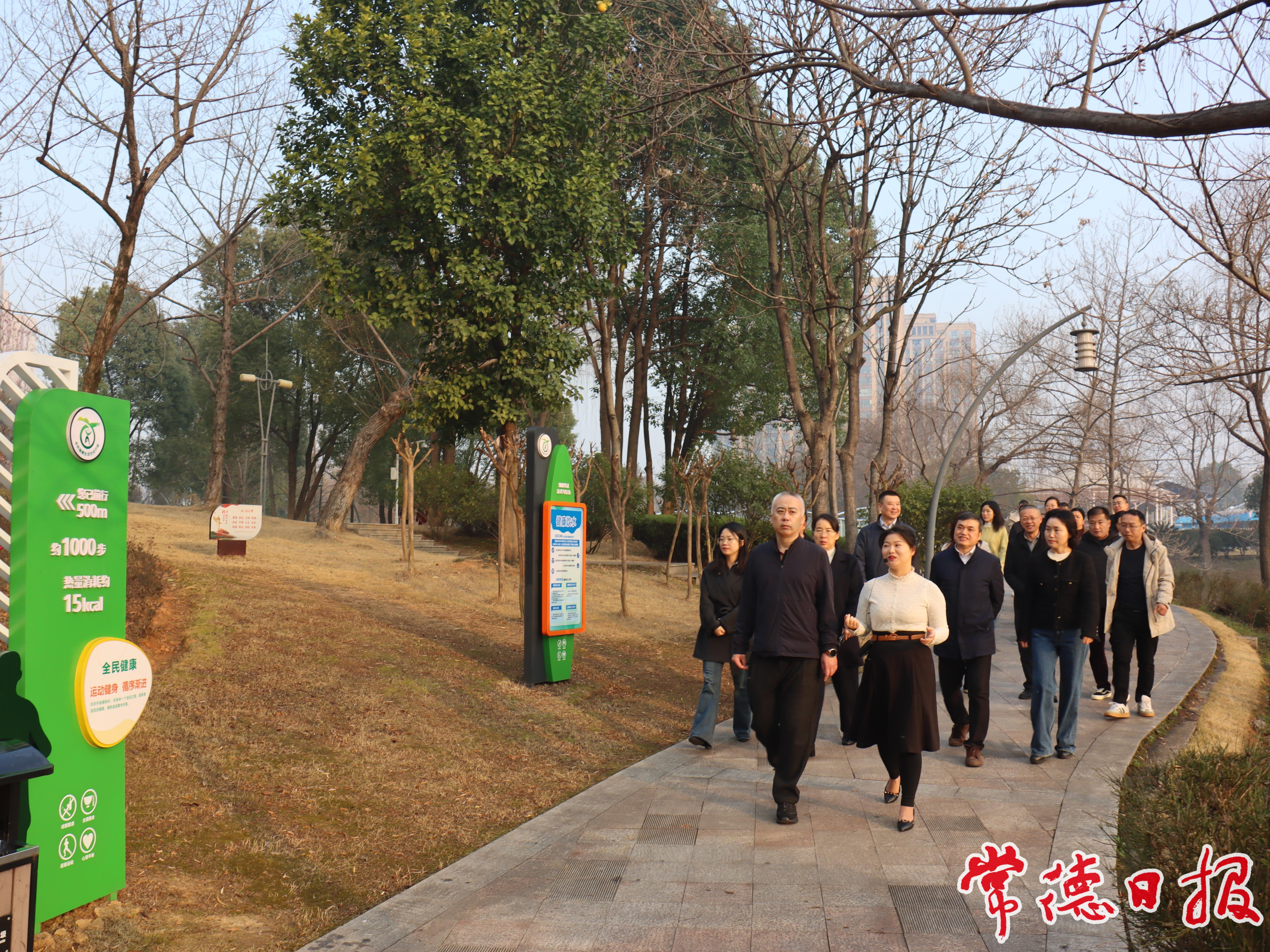 调研组一行实地考察了丁玲公园健康主题公园、健康小屋以及武陵区落路口社区的全民健身设施、健康检测点,深入了解常德市在健康支持性环境建设与基层健康服务方面的具体实践。