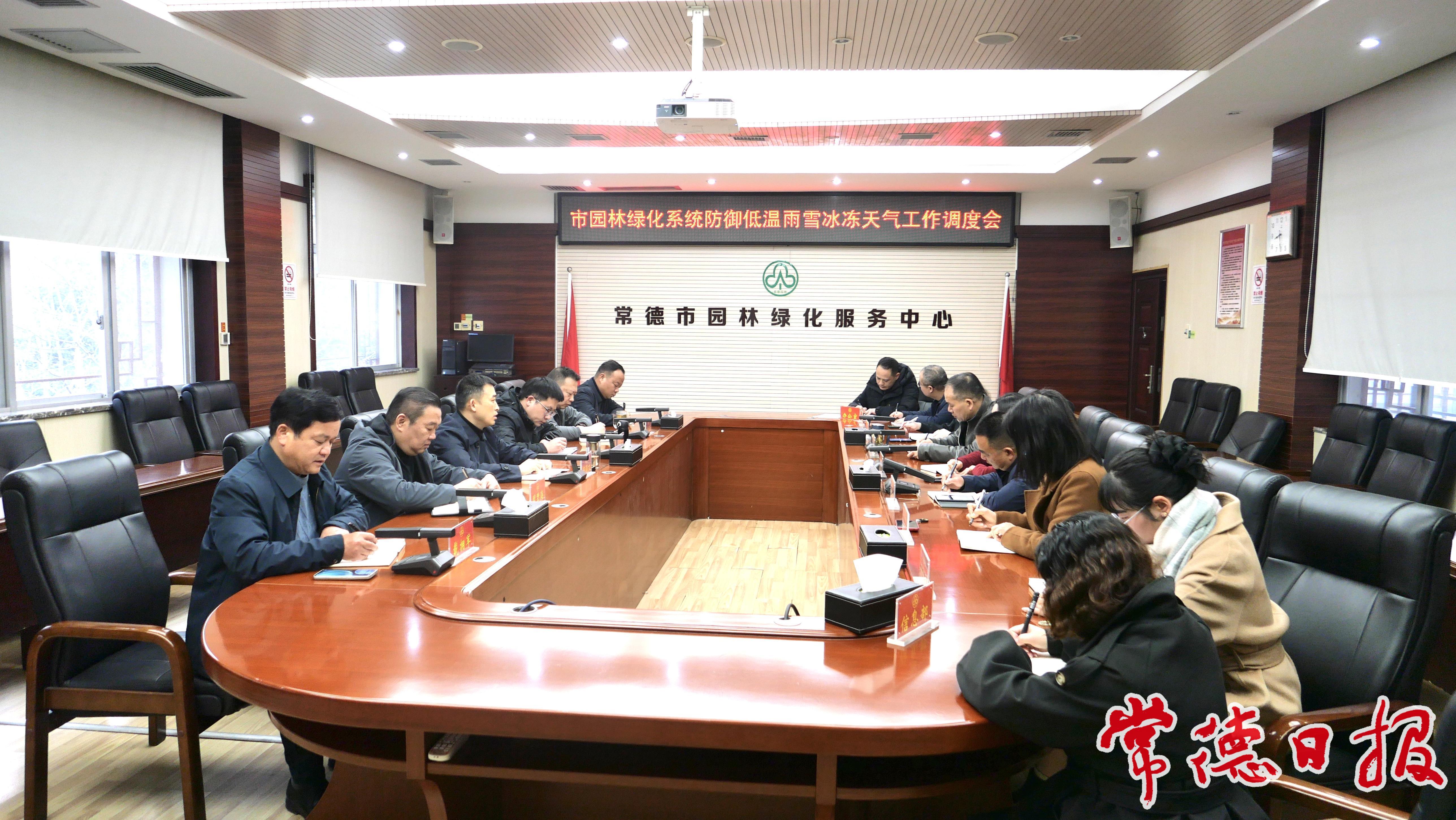 常德日报记者 伍银 通讯员 陈炯明 刘舟颖 文/图 为应对即将来临的寒潮雨雪天气,1月16日上午,常德市园林绿化服务中心组织召开全市园林绿化系统防御低温雨雪冰冻天气工作调度会。会议针对市气象台发布的寒潮预警进行专项安排部署,要求各相关部门提前行动,全面落实防冻除雪各项举措,保障市民生命及出行安全。