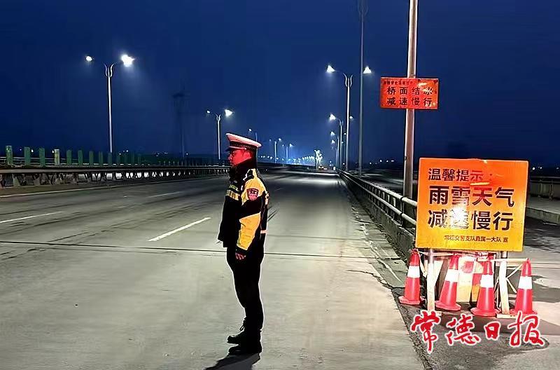 常德日报记者 王敏 通讯员 张妍 文/图 1月19日起,新一轮寒潮冰雪天气席卷常德,给交通安全带来严峻考验。常德公安交管部门迅速落实应急响应机制,坚持值班值守到位、宣传提示到位、交通组织到位、路面管控到位、视频巡查到位等多项交管措施,有效管控道路安全风险隐患。