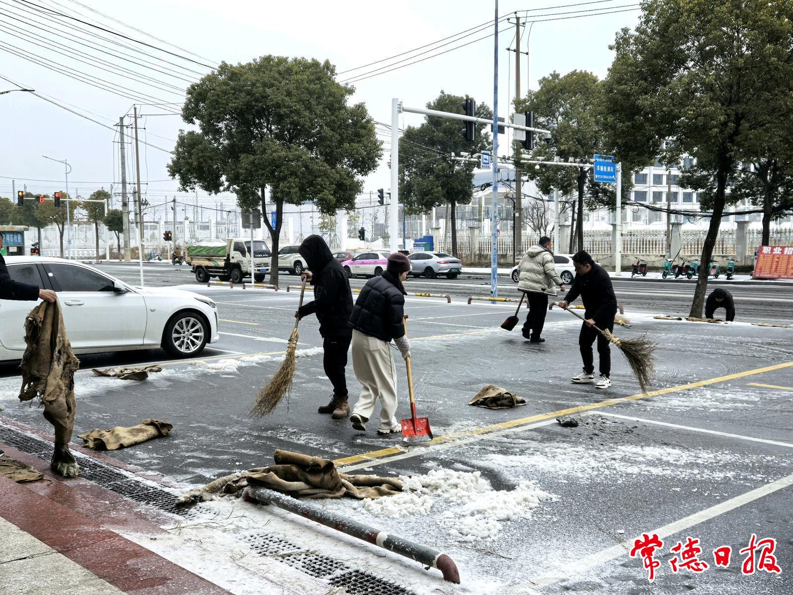 9时许,记者在常德汽车总站看到,站内显示屏不再显示车辆信息,工作人员正在清扫售票大厅入口处积雪,铺设防滑带。候车大厅内仍准备了姜茶,工作人员为不知情到站的旅客做好引导安抚工作,并送上热茶。