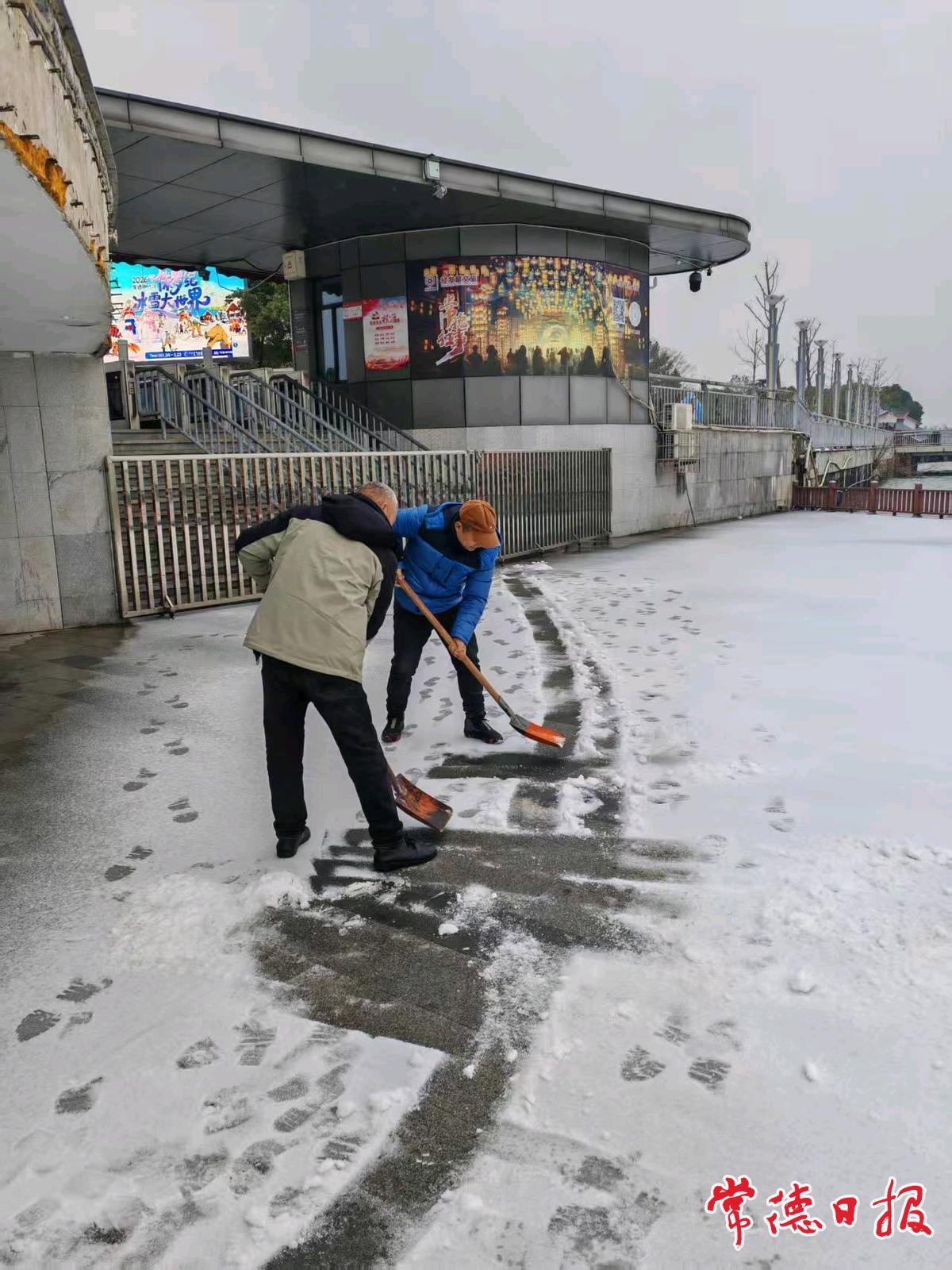 在柳叶湖、穿紫河,市水运事务中心工作人员逐船检查船只停靠位置是否符合安全规范,仔细查验船体锚定、系缆等固定措施是否牢固有效,严防因冰雪、大风等极端天气引发船只移位、碰撞受损等,并积极组织辖区企业及时开展码头区域的铲雪除冰活动,全力消除安全隐患。在武陵区大西门渡口、桃源县孔家河渡口等重点渡口,检查停渡停航执行、应急物资准备等情况,同步开展灾害天气应对指导服务。