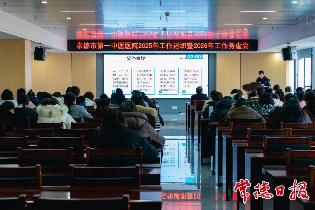 常德日报记者 王浪 通讯员 吴秀英 文/图 近日,常德市第一中医医院组织召开2025年度工作述职暨2026年工作务虚会护士长专题汇报会。会议全面盘点过去一年护理工作,聚焦问题挑战,并系统部署新年度重点任务,旨在进一步融合中医特色,强化护理效能,推动护理服务高质量发展。医院全体领导班子成员、各临床医技科室护士长及职能科室负责人与会。