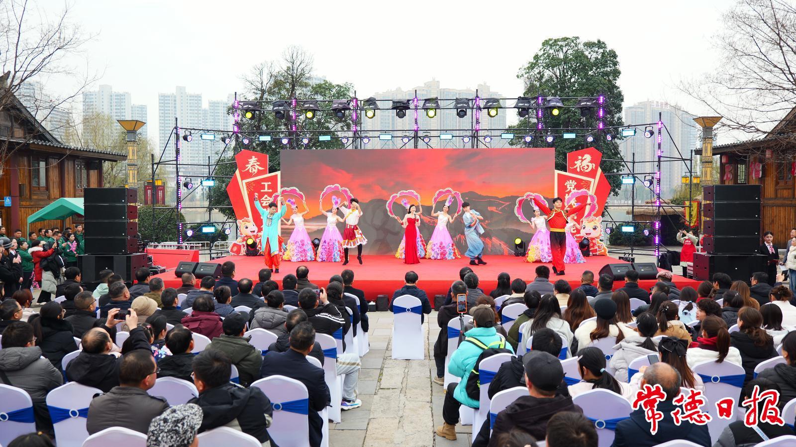 与此同时,舞台上的文艺节目精彩纷呈,歌舞表演、非遗展示、互动游戏轮番上演,购物乐趣与文艺愉悦交织。市民在选购年货之余,还能欣赏到地道的常德文化表演,感受视听盛宴。“这不仅是购物,更是一场文化体验!”一位带着孩子的家长感慨。活动通过味觉、听觉与视觉的多维融合,为市民奉上了一场沉浸式的年末狂欢。