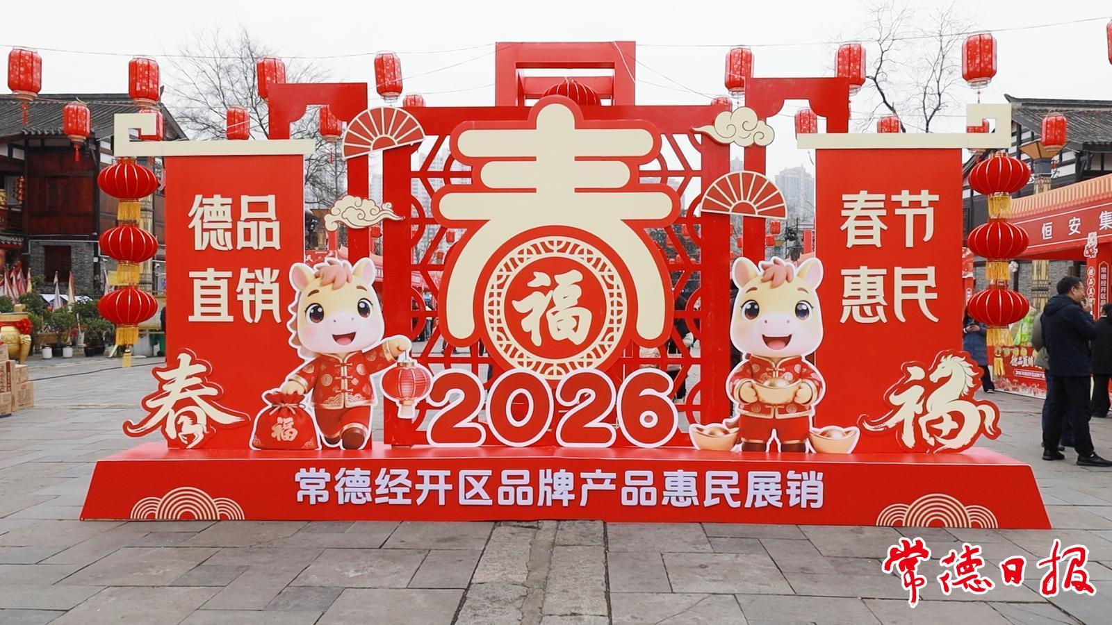 常德日报记者 郑彦 文/图 1月24日,2026“德品直销 春节惠民”展销活动在常德河街热闹启幕,9天惠民盛宴刚开启,就吸引了大批市民游客驻足打卡,现场暖意融融、年味渐浓。