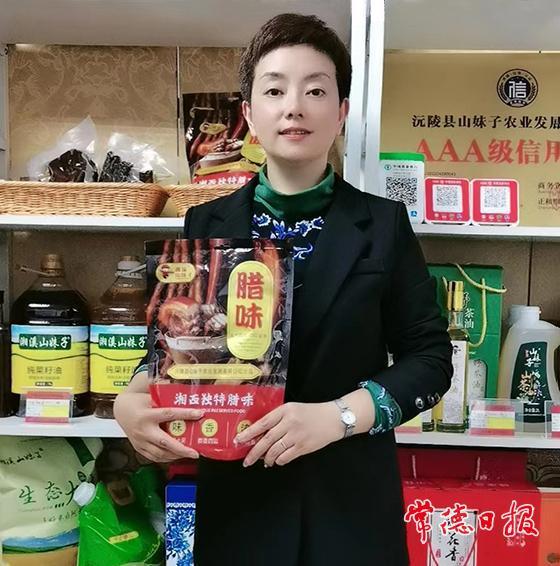 2024年,借着常德市对口帮扶沅陵县消费帮扶的东风,伍珊第一次带着公司主打的“湘溪山妹子”腊制品走进常德河街沅陵农产品展销专馆。彼时,沅陵农品初入常德市场,伍珊带着满满的诚意,现场试吃、讲解沅陵腊味的传统制作工艺,让不少市民记住了这份来自大山的鲜香。河街的高人气与常德市民的热情,让伍珊与常德河街的缘分正式开启。