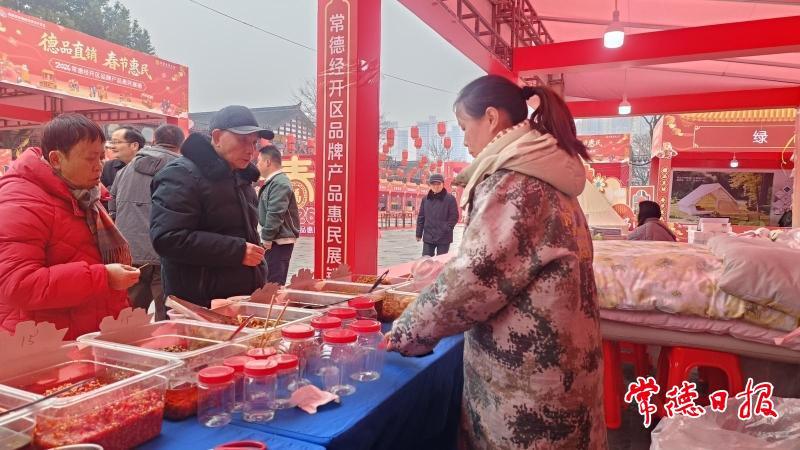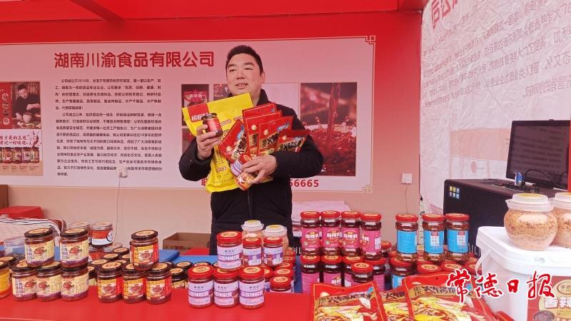 岁末年初,常德河街春秋广场“德品直销”现场人头攒动,年味浓郁。湖南川渝食品有限公司的展位前格外热闹,火锅底料、牛肉酱及藠果、木瓜丝等坛坛菜备受市民青睐,现场品尝、选购的市民络绎不绝,销售场面十分火爆。