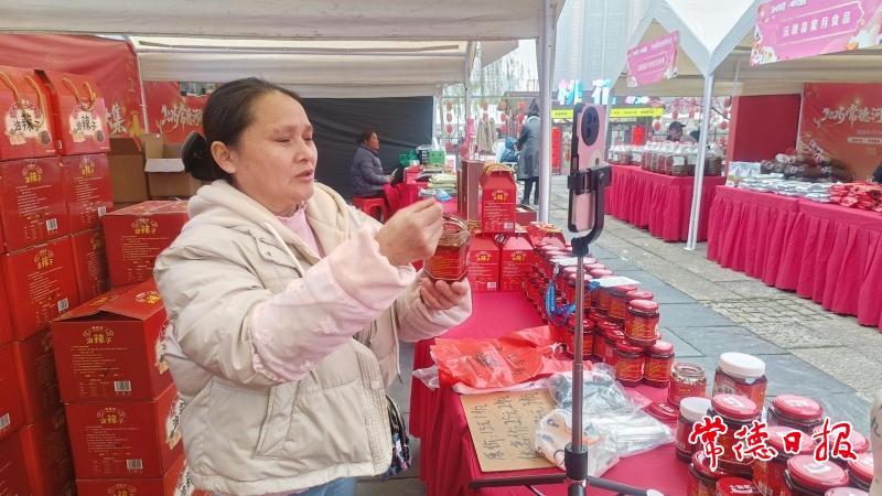 腊味浓情满河街,沅陵好物引客来。在2026常德河街“德品直销春节惠民”年货节沅陵专场现场,湖南周晚女食品有限公司的展位前格外热闹。公司负责人周晚女凭借线下体验试吃、线上直播带货的双线销售模式,让这罐带着浓郁芝麻与蒜香、承载沅陵乡愁的油辣子走出展会、火上云端,实现销量持续攀升。