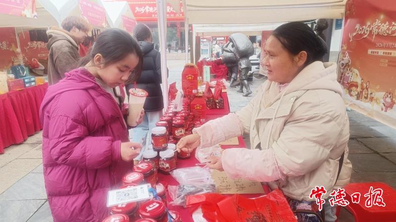 展位上,玻璃瓶装的油辣子色泽红亮,开盖瞬间,芝麻的焦香、大蒜的鲜香与辣椒的醇香交织弥漫,工作人员现场开瓶试尝,不少市民品尝后当即下单,有的市民一次性选购多瓶,既为自家餐桌添味,也当作新春伴手礼。“这个油辣子香而不燥,回味无穷,拌菜、拌面都合适,过年备上几瓶正合适。”现场选购的常德市民刘女士说。