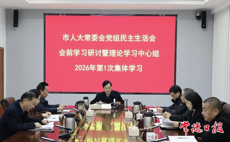 常德日报记者 谭明 文/图 1月28日,市人大常委会党组书记、主任蒋锋主持市人大常委会党组2025年度民主生活会会前学习研讨暨理论学习中心组2026年第1次集体学习。