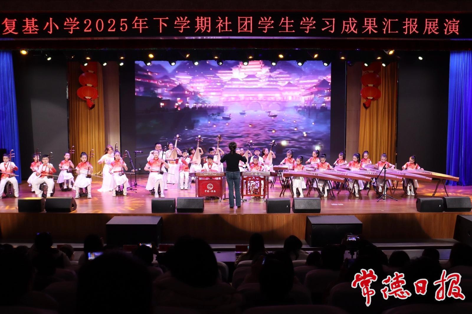 常德日报记者 杨鑫 实习生 赵玲 通讯员 肖海丽 文/图 1月31日上午,柳叶湖旅游度假区复基小学2025年下学期社团学生学习成果汇报展演在学校报告厅举行。学校师生及家长代表欢聚一堂,共赴一场洋溢着青春活力与艺术芬芳的社团成果盛宴。