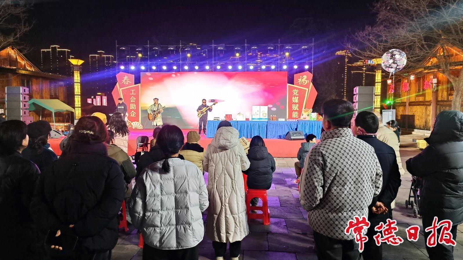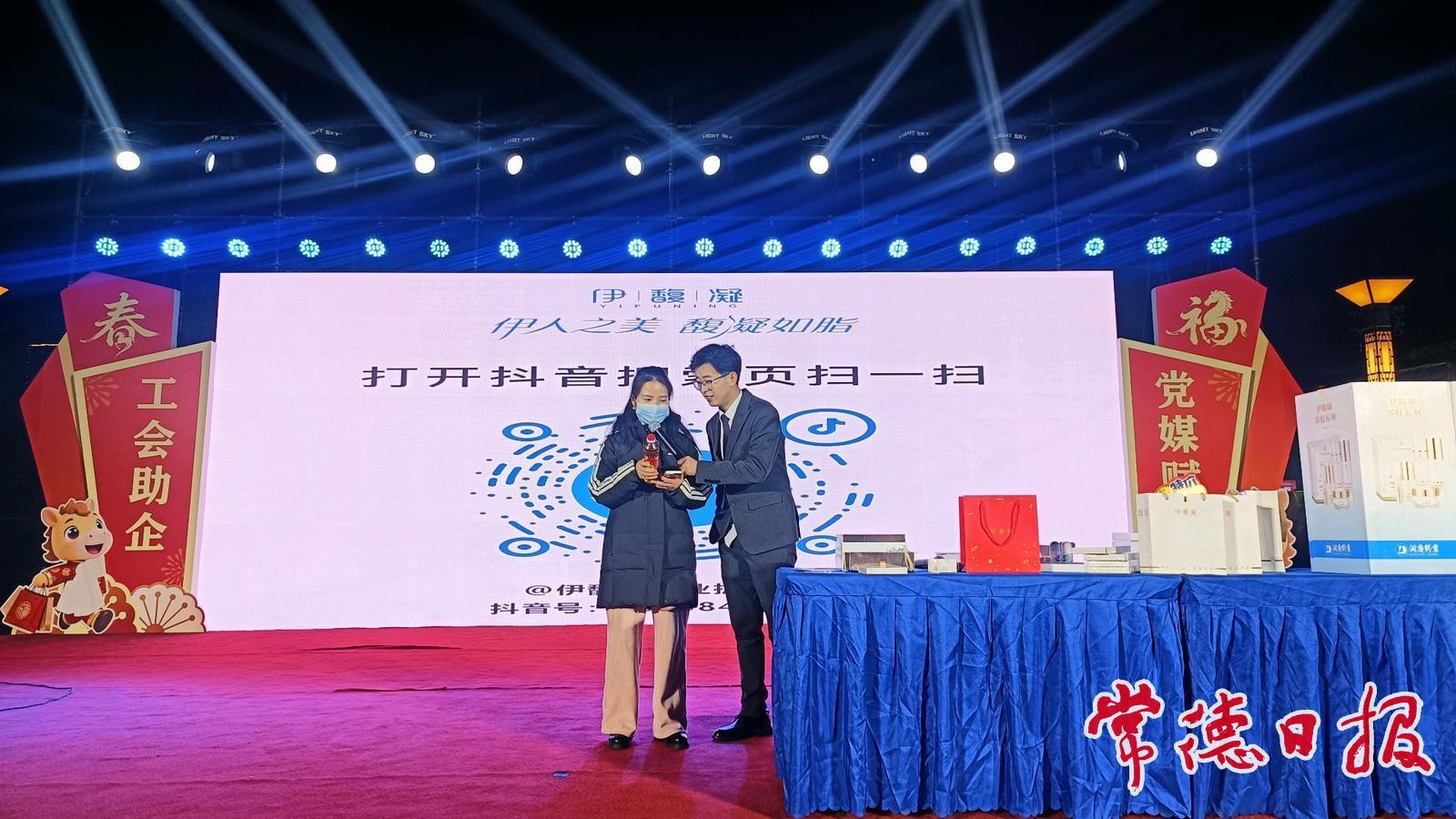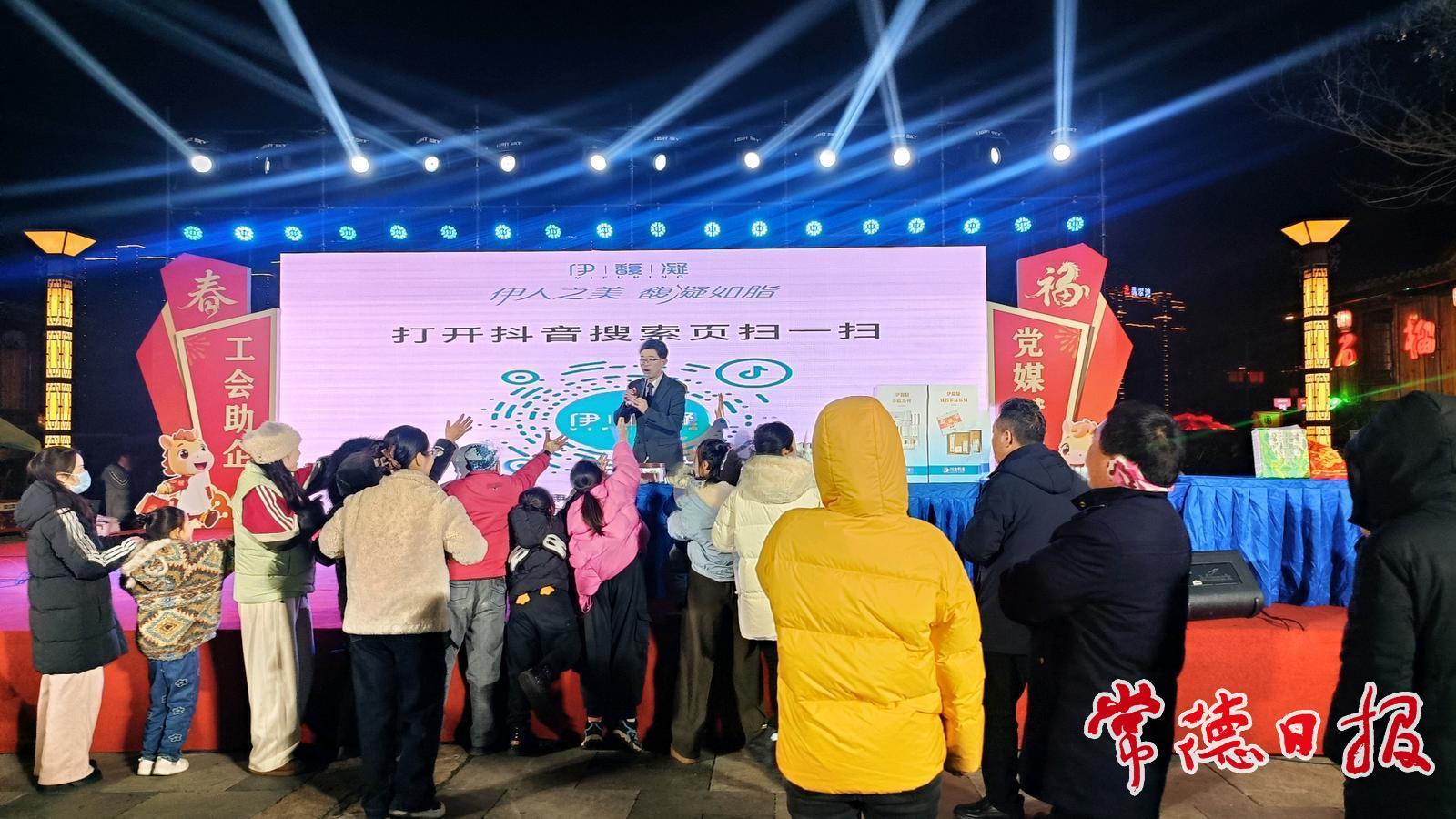 腊月年味浓,惠民暖人心。1月31日晚,“德品直销 春节惠民”2026常德经开区品牌产品推介会在常德河街春秋广场举办。洞庭药业、恒安纸业、金健米业、川渝食品、万惠生物五大本土品牌集中亮相推介,各厂家以工厂直供的优惠价格、丰富多样的产品选择,为常德市民送上新春消费福利,让河街的夜晚更添烟火气与年味儿。