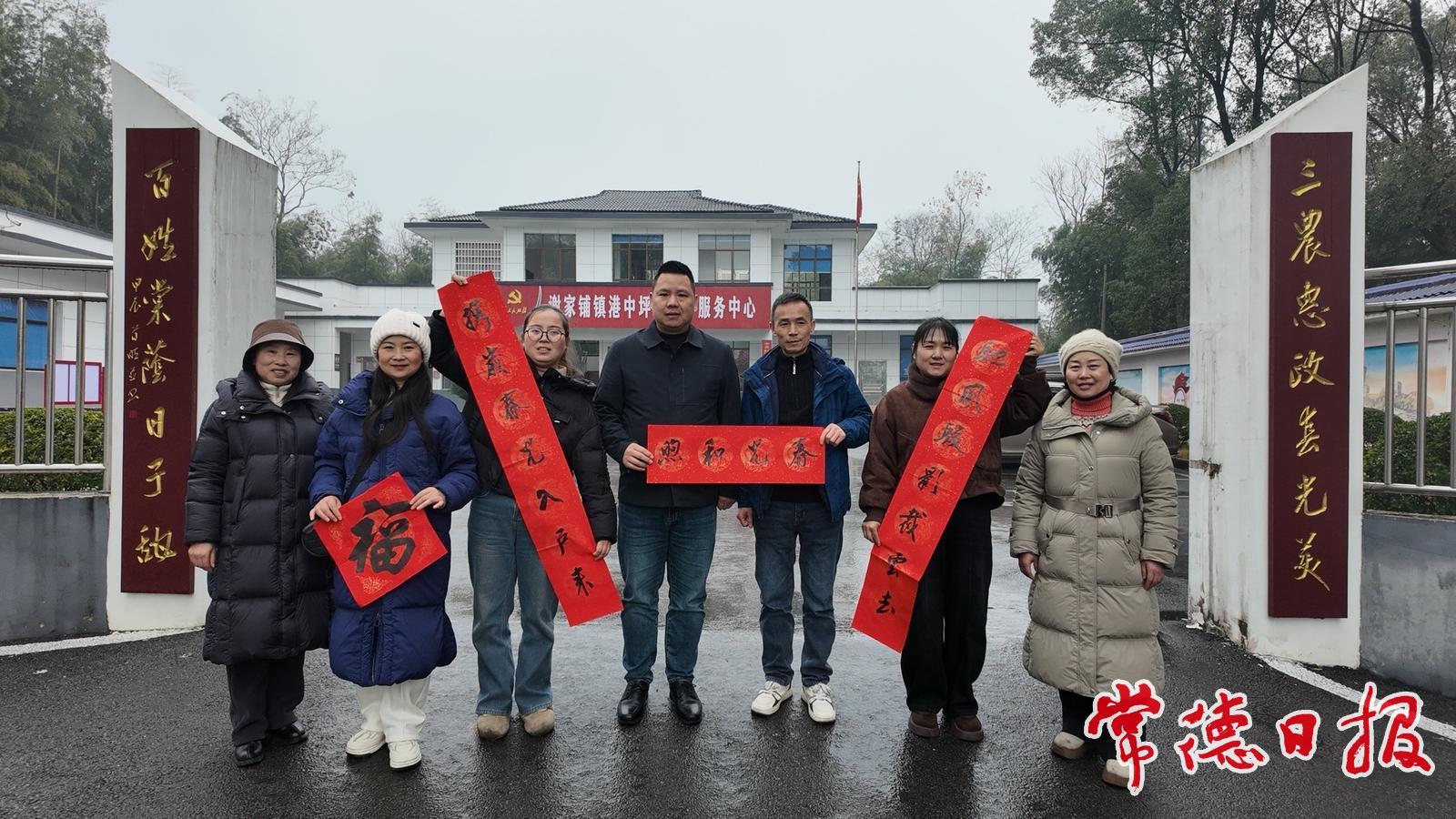 常德日报记者 黄云霞 通讯员 易娇妃 1月30日,天气湿冷,却未能阻挡常德市楹联家协会工作人员创作楹联、送福下乡的脚步。他们来到鼎城区谢家铺镇港中坪村,为村部、种粮大户、乡村解说员、返乡创业人群等送上楹联、福字和新春祝福,得到了村民们的交口称赞。