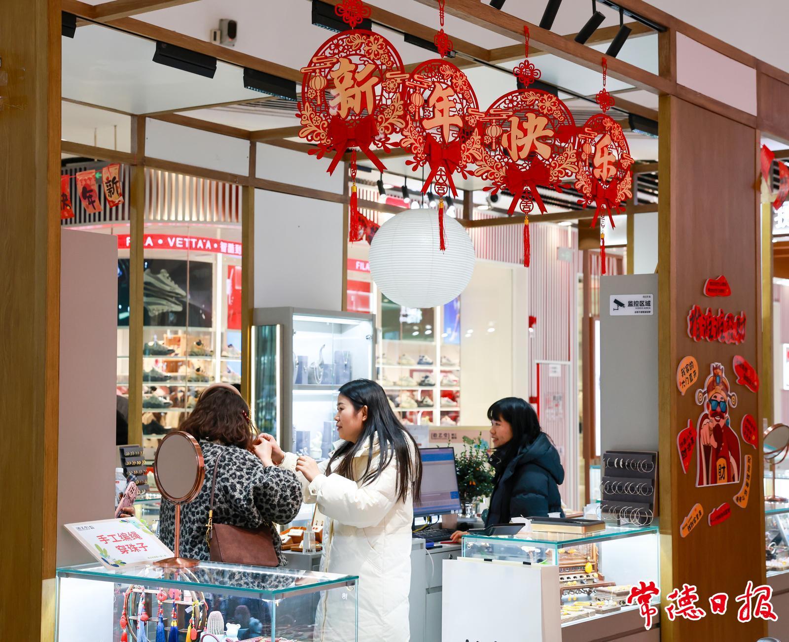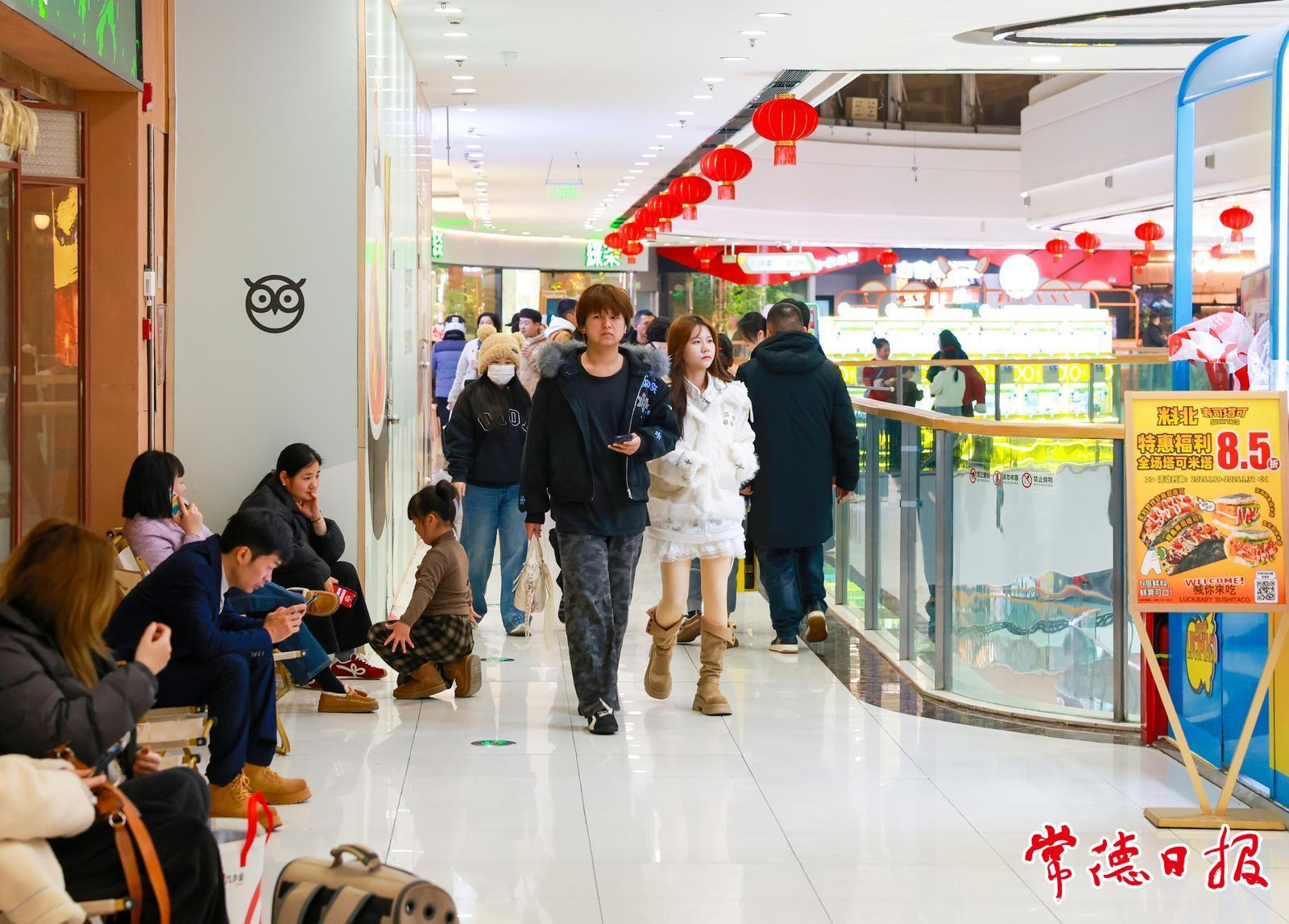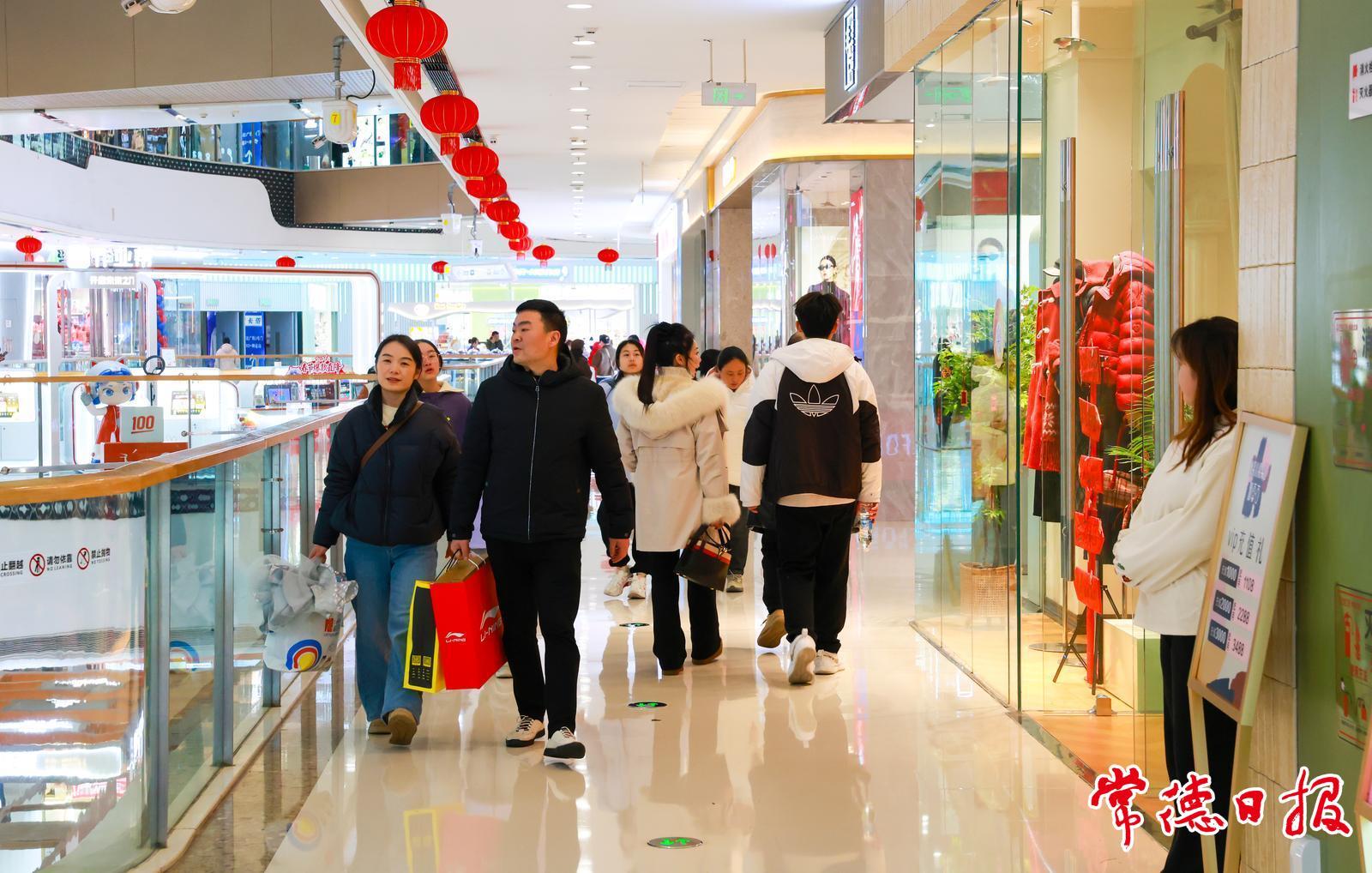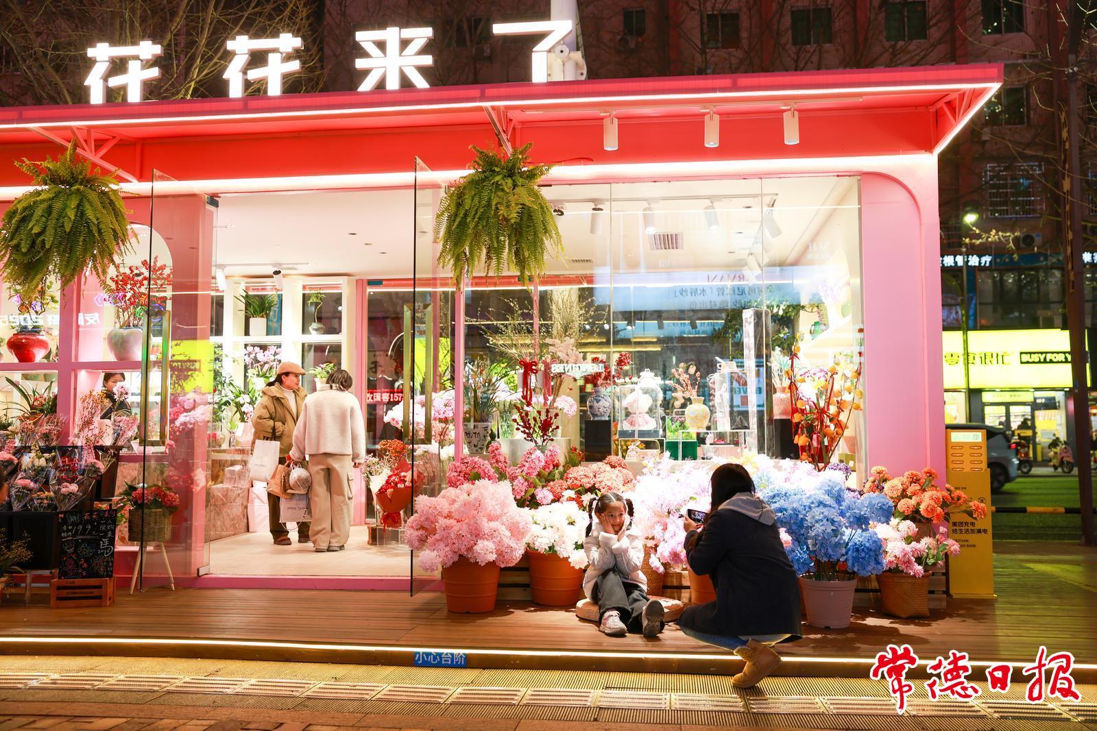 春节临近,常德市城区张灯结彩。市民逛花店、购买新衣服新鞋子、置办年货,年味渐浓。