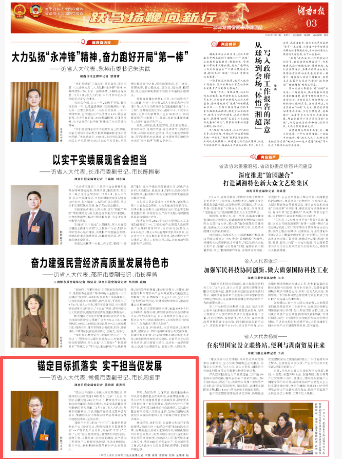 “坚决扛牢经济大市挑大梁的责任担当,多措并举巩固经济回升向好势头,力争‘十五五’末经济总量达到6000亿元以上,持续提升对全省的经济贡献度、发展支撑力,为全省高质量发展作出新的更大贡献。”2月6日,省人大代表,常德市委副书记、市长周振宇在接受记者采访时表示,常德将坚定不移推动省两会精神在沅澧大地落到实处、见到实效。