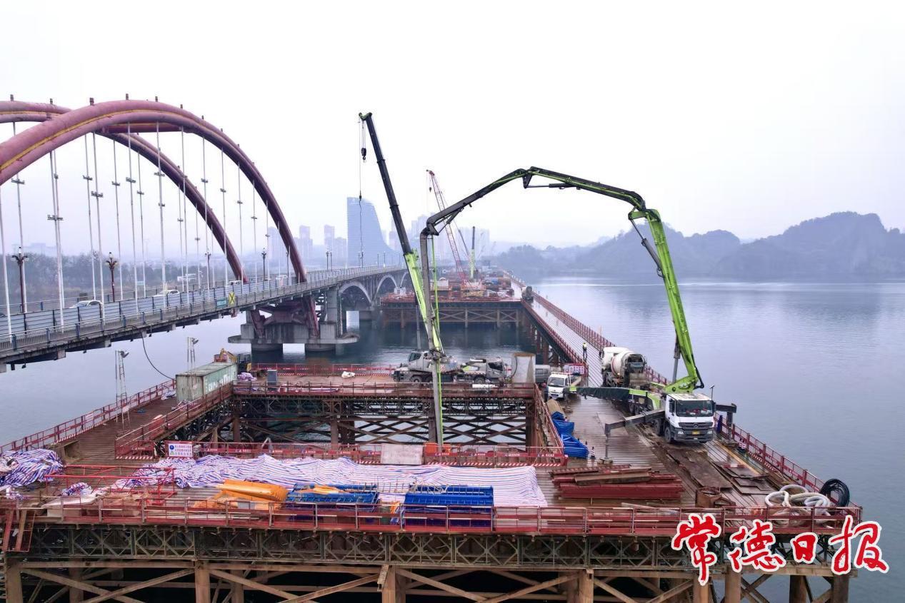 常德日报记者 胡秋菊 通讯员 彭金科 文/图 2月4日,随着最后一方混凝土顺利浇筑完成,由湖南省水运建设投资集团有限公司负责建设的沅水桃源枢纽二线船闸建设工程桃源沅水特大桥9号主墩承台施工圆满完成。至此,项目团队成功攻克第8个深水厚卵石层围堰施工难题,如期实现2026年汛期前全部主墩出水的关键节点目标。