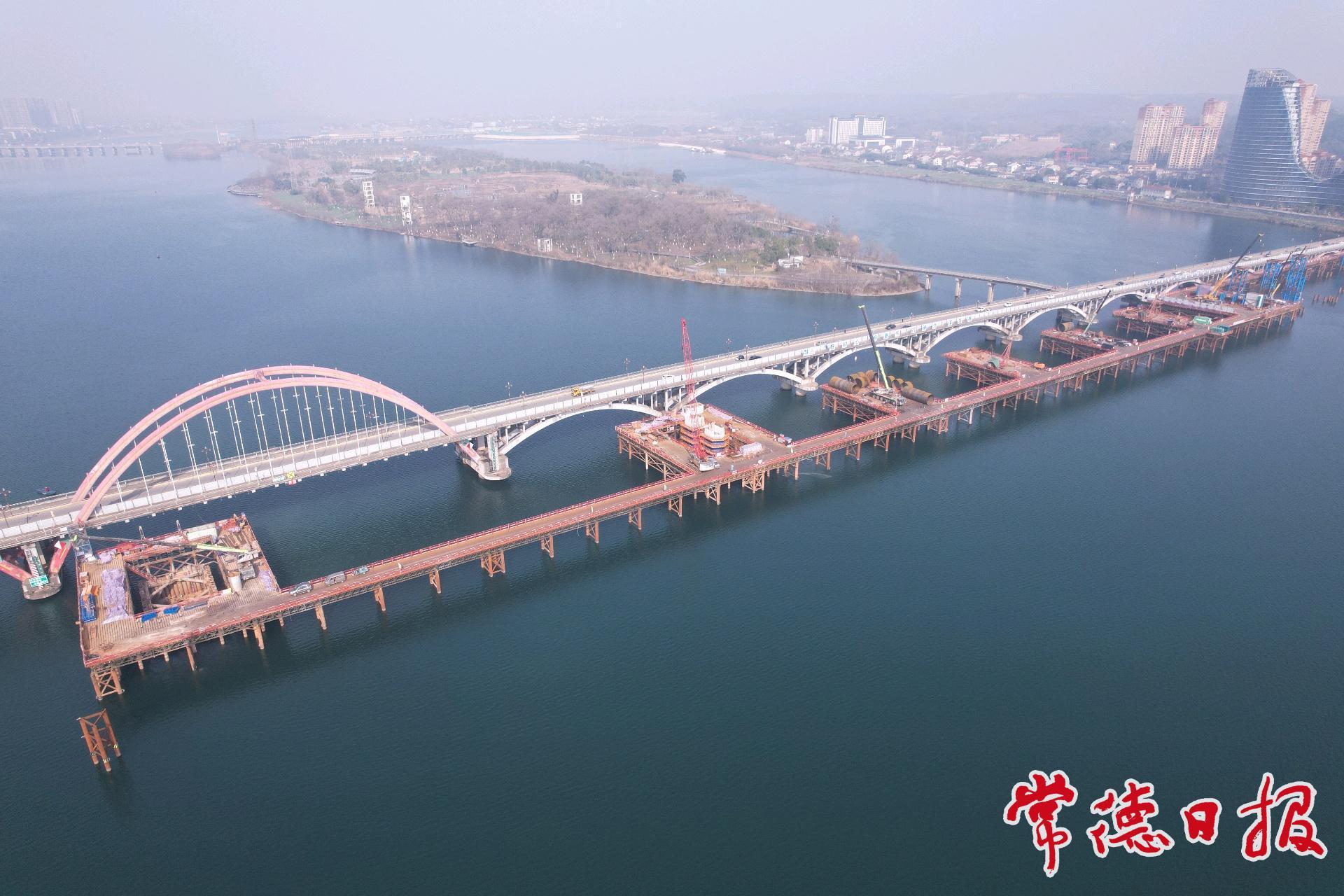 桃源沅水特大桥主墩所处水域水深逾10米,河床覆盖层为厚度达11米的强透水卵石层,卵石含量超过80%,最大粒径达40厘米,松散结构形同“天然漏勺”,致使传统围堰工艺完全失效。与此同时,施工区域紧邻下游仅34米处的既有运营桥梁,必须全程确保老桥结构安全与正常通行;工程又位于城市饮用水源保护区,实行“零排放、零污染”的“零容忍”管控要求;加之大体积混凝土浇筑带来的“水化热”控制难题,每一项因素都对团队的综合攻坚能力构成严峻考验。