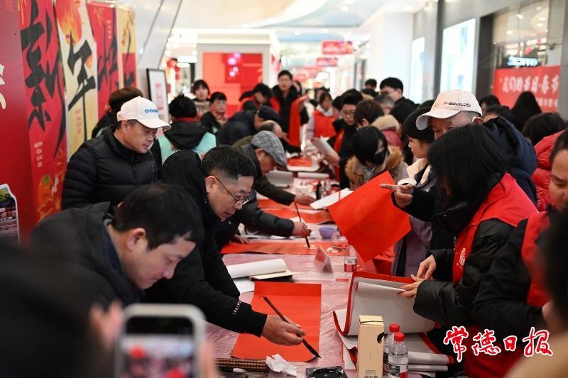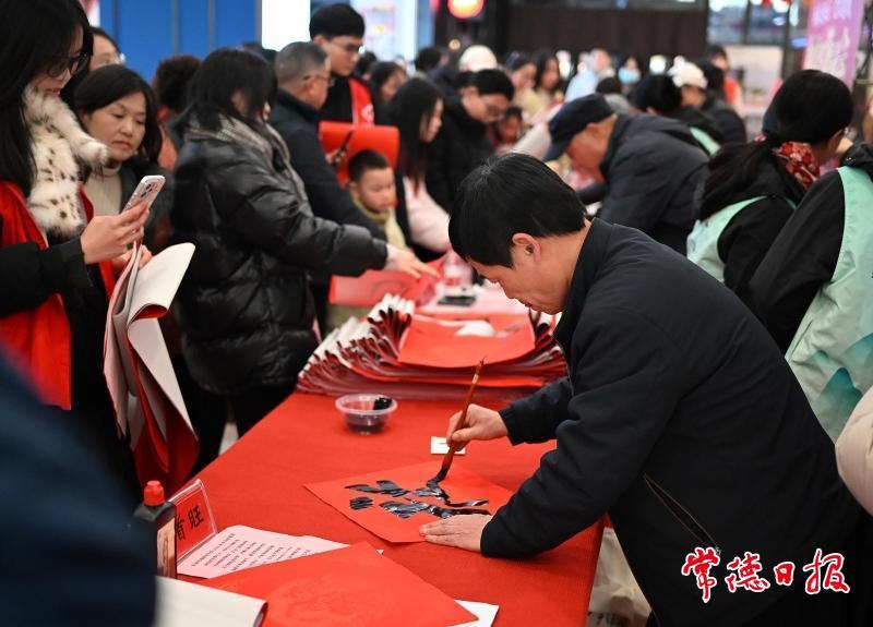 常德日报记者 张瑜 通讯员 曾群 周佳 文/图 2月9日下午,常德友阿国际广场内,一场飘散着墨香的年俗文化市集吸引市民驻足。常德市图书馆将“书香·寻年记”迎新春年俗文化市集系列活动带到商业街区,为市民在购物休闲之余,提供了一份别具特色的“年味”体验。