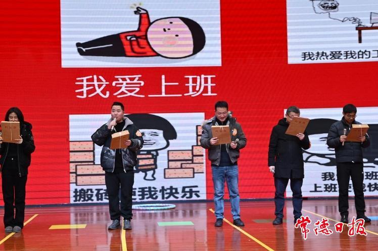 回顾过后,活动进入文艺表演与团队竞技交织的高潮环节。干部职工精心准备的节目轮番登场,吉祥喜庆的《好运来》、活力四射的《年会DISCO》、令人捧腹的《我爱上班》……掌声、笑声、喝彩声交织不断。穿插其间的七大团队竞技游戏,更是将团结协作、奋勇争先的氛围推向顶点——“马不停蹄”考验节奏与平衡,“马到成功”讲究默契传递,“群龙取水”挑战信任与技巧。7个方阵在领队带领下全情投入,为集体荣誉全力以赴。场上比拼激烈,场下助威声此起彼伏,现场汇成一片欢乐的海洋。