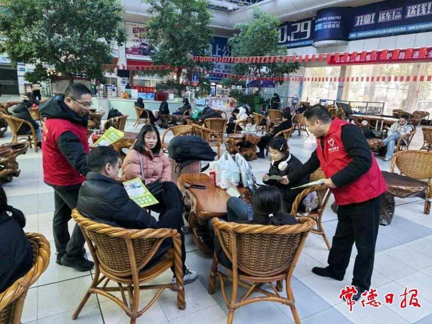 常德日报记者 胡秋菊 通讯员 施乐华 文/图 随着春运进入节前高峰期,为全力保障旅客平安、便捷、温馨出行,常德市道路运输服务中心组织各支部党员深入春运一线,自2月9日起在常德汽车总站开展“暖冬行动·情满旅途”志愿服务活动。