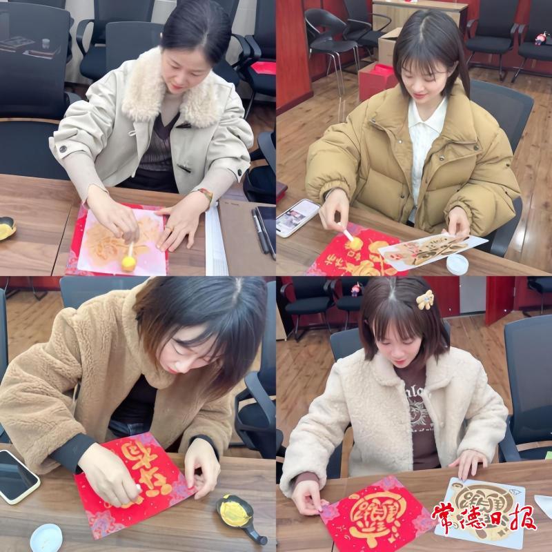 合唱结束后,大家踊跃分享自家置办年货、书写春联和福字的特色经验,畅谈过往工作感悟,倾诉对新一年的美好憧憬。随后,新年拓印画活动将现场气氛推向高潮,大家满怀期待、跃跃欲试,亲手体验拓印技艺,在小心翼翼的操作中,将对新春的美好祝福凝于笔端、印于纸上。