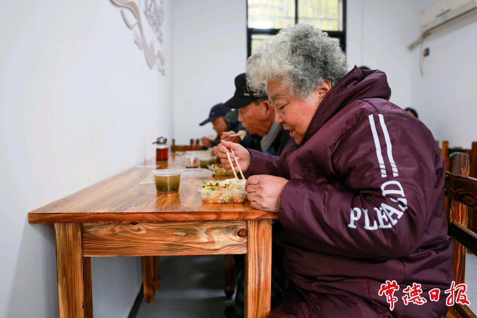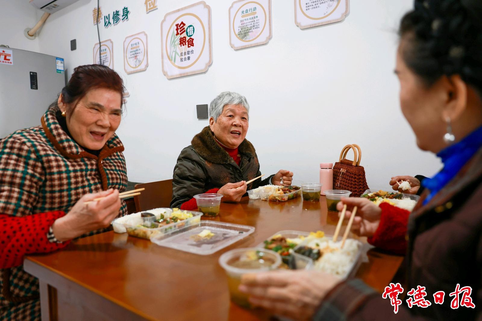 近日,记者走进常德市汉寿县城东社区老年人日间照料中心,阵阵饭菜香扑面而来。68岁的彭华是这里的常客,他端着餐盒,盛了花菜、肉炒辣椒、白菜,再打一份汤和一碗香喷喷的米饭。他找了个位子坐下,对面两位老伙计已经动筷。