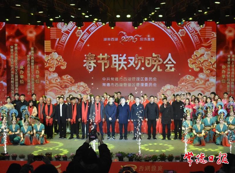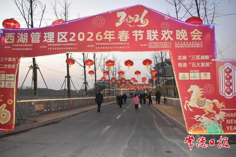 循着喧腾的人声,踩着长串红灯笼投下的暖光,我踏入西湖管理区工人文化宫。清冷的夜风被拦在门外,大厅内漫开的,是揉进了洞庭水汽的年味,既醇厚,又妥帖。一张张或熟悉或陌生的面孔,晃动在光影里,有爽朗干练的企业家,有谦和有礼的干部,有话语质朴的村支书,也有笑容自带泥土气的乡民——2月11日的这个夜晚,男女老少400余人欢聚一堂,共赏一场属于西湖人的春晚。