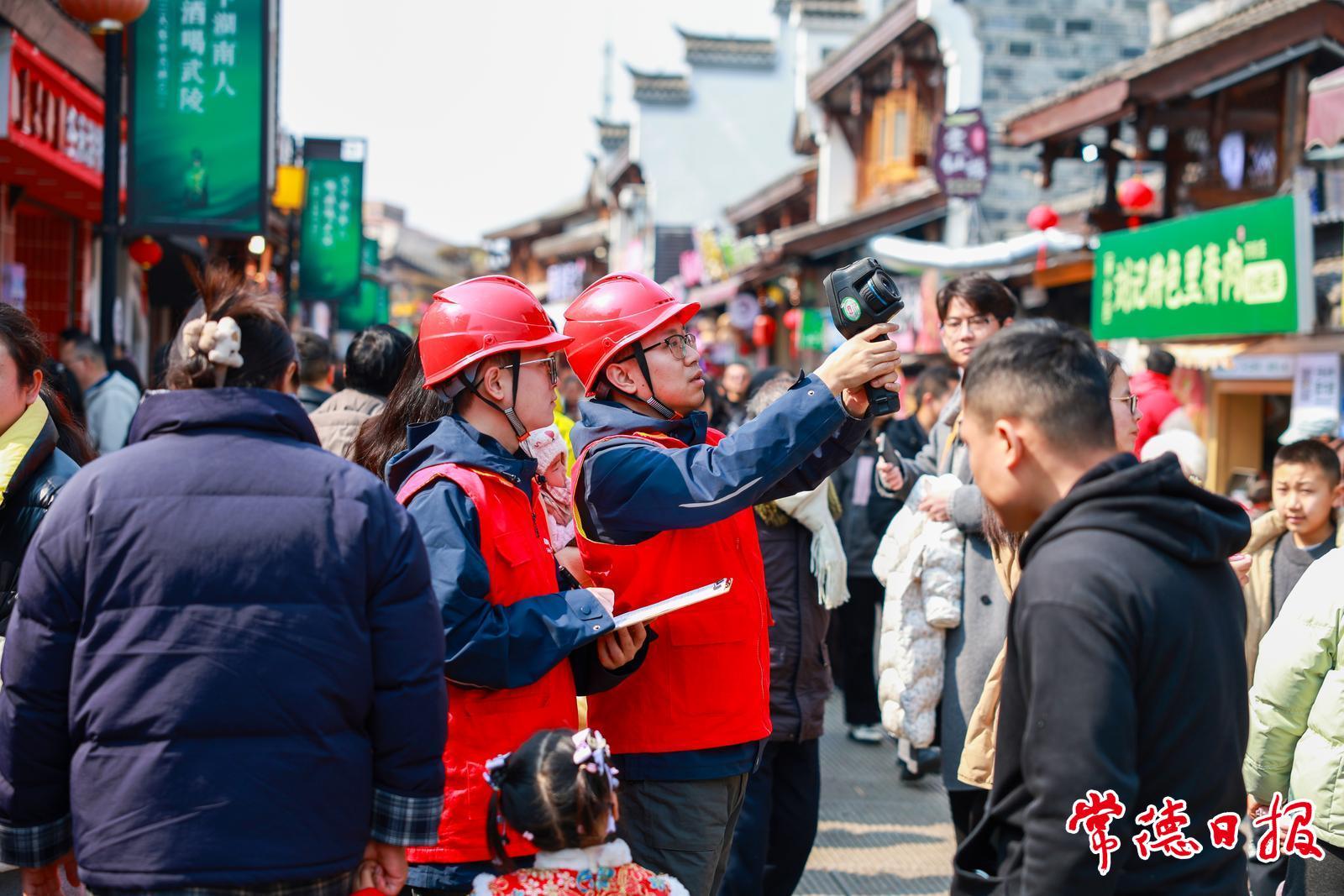 中午,两人来到常德河街。阳光正好,街上人头攒动,红红火火的年味儿扑面而来。两人穿行在人流中,继续巡检。