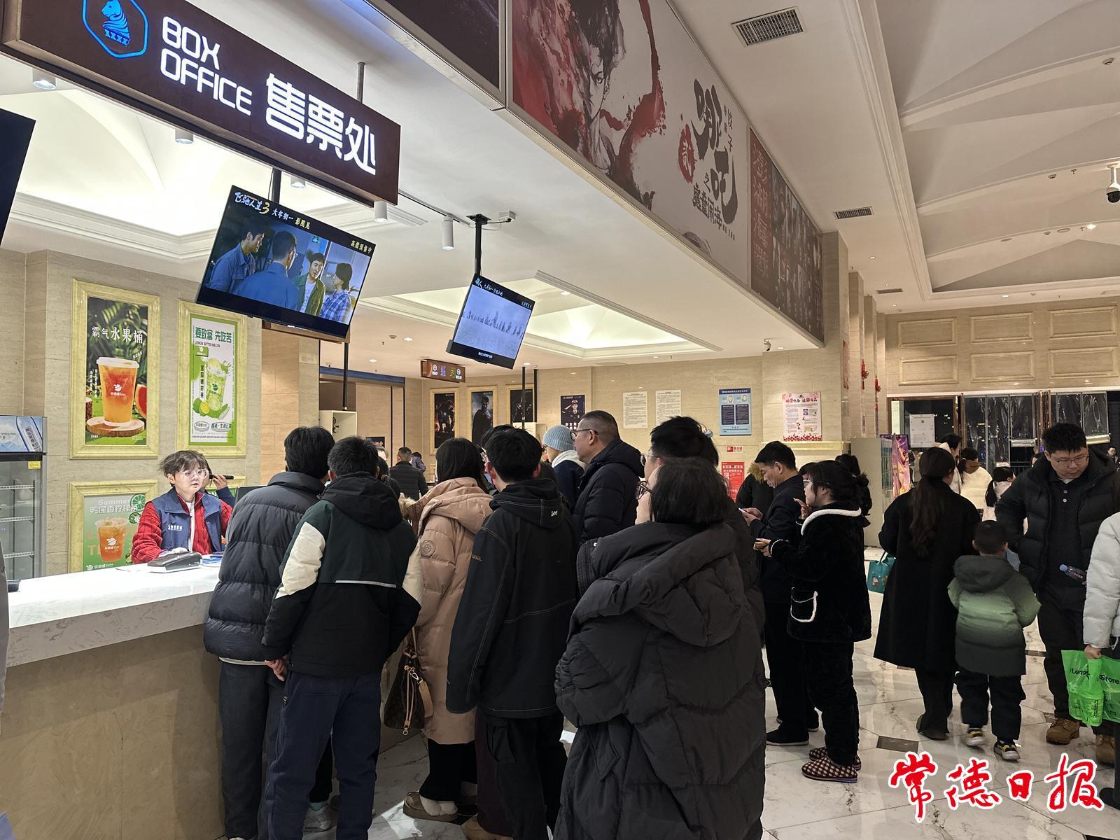 记者在常德骏维影城看到,售票处和检票口排起长龙,等待观影的市民络绎不绝。“我比较关注《惊蛰无声》,张艺谋导演拍这种题材还是第一次。”市民陈女士正在浏览排片信息,她告诉记者,今年春节档影片质量很高,打算趁着假期和朋友多看几场。影院内喜气洋洋,不少市民举家出动,在光影交错中欢度新春佳节。