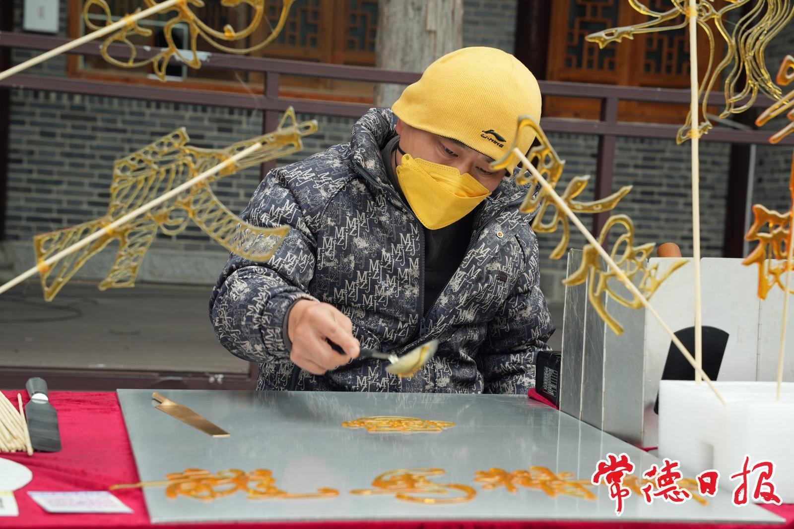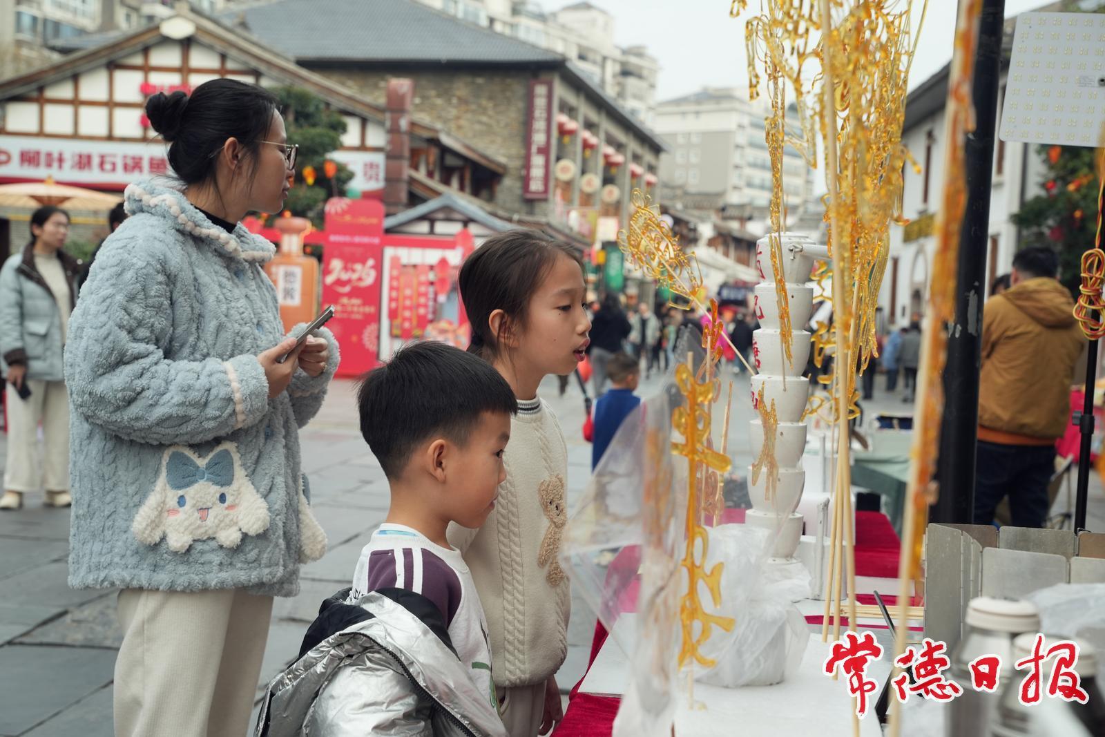 糖丝收尾,竹签压实。又一支透亮的“骏马”递进春天的常德河街,甜香混着年味,在人声里悠悠散开。