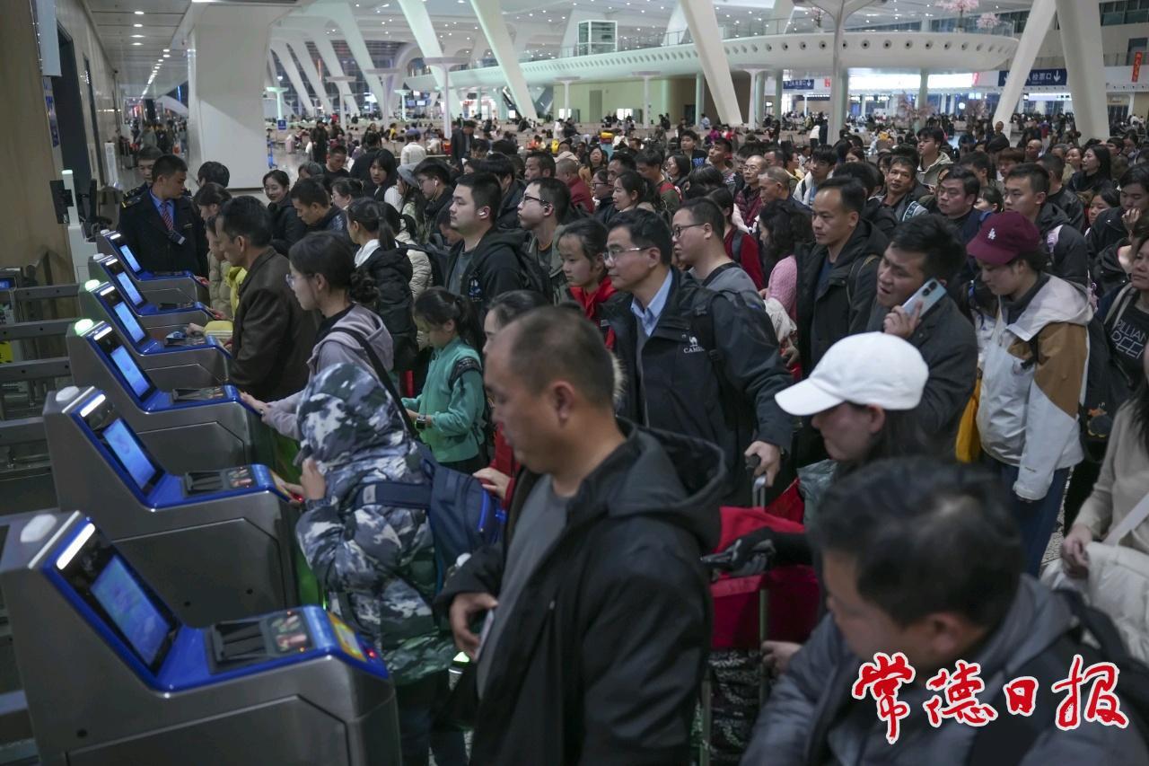 常德日报记者 胡秋菊 通讯员 郑欢 文/图 2月21日,农历正月初五。随着春节假期进入尾声,务工、探亲返程客流叠加,常德火车站迎来春运返程高峰,当日车站到发旅客超3.1万人次。