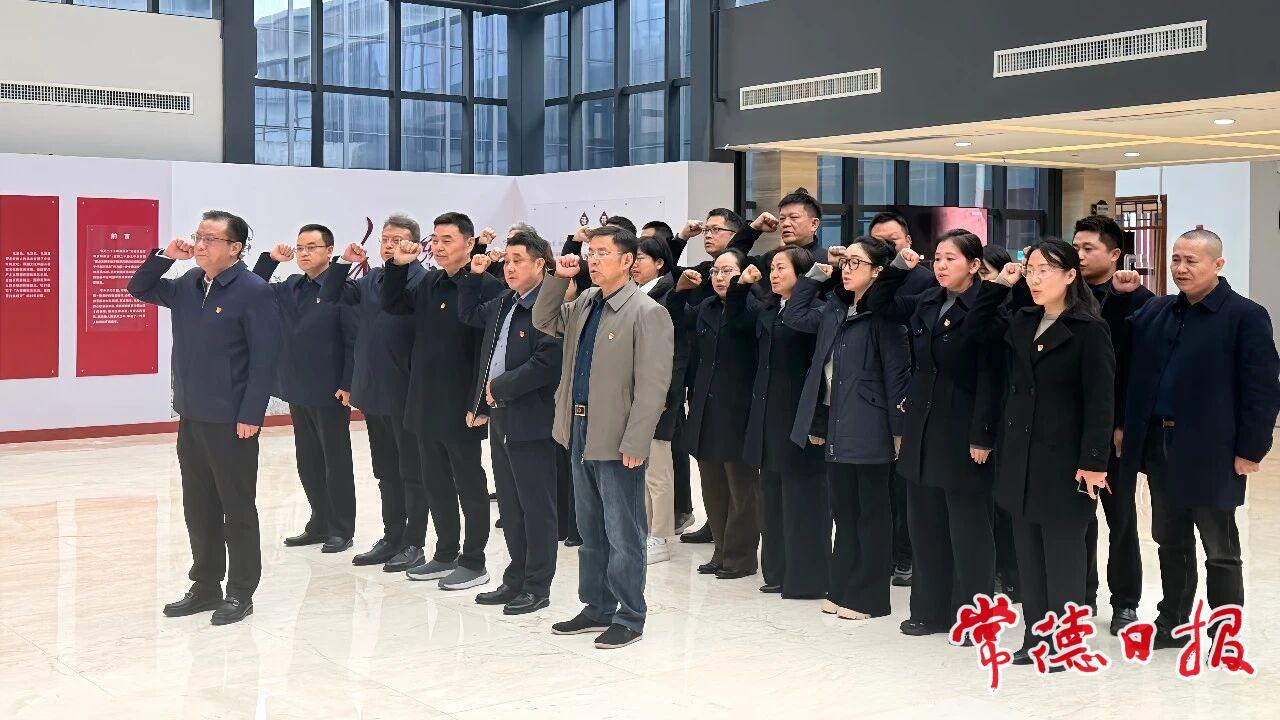 常德日报记者 李张念 通讯员 吴伟麟 文/图 近日,常德市中级人民法院党组理论学习中心组(扩大)将学习课堂“搬”进常德市丁玲纪念馆,开展红色教育研学活动。市中级人民法院党组书记、院长柏广衡带领全体成员重温入党誓词。