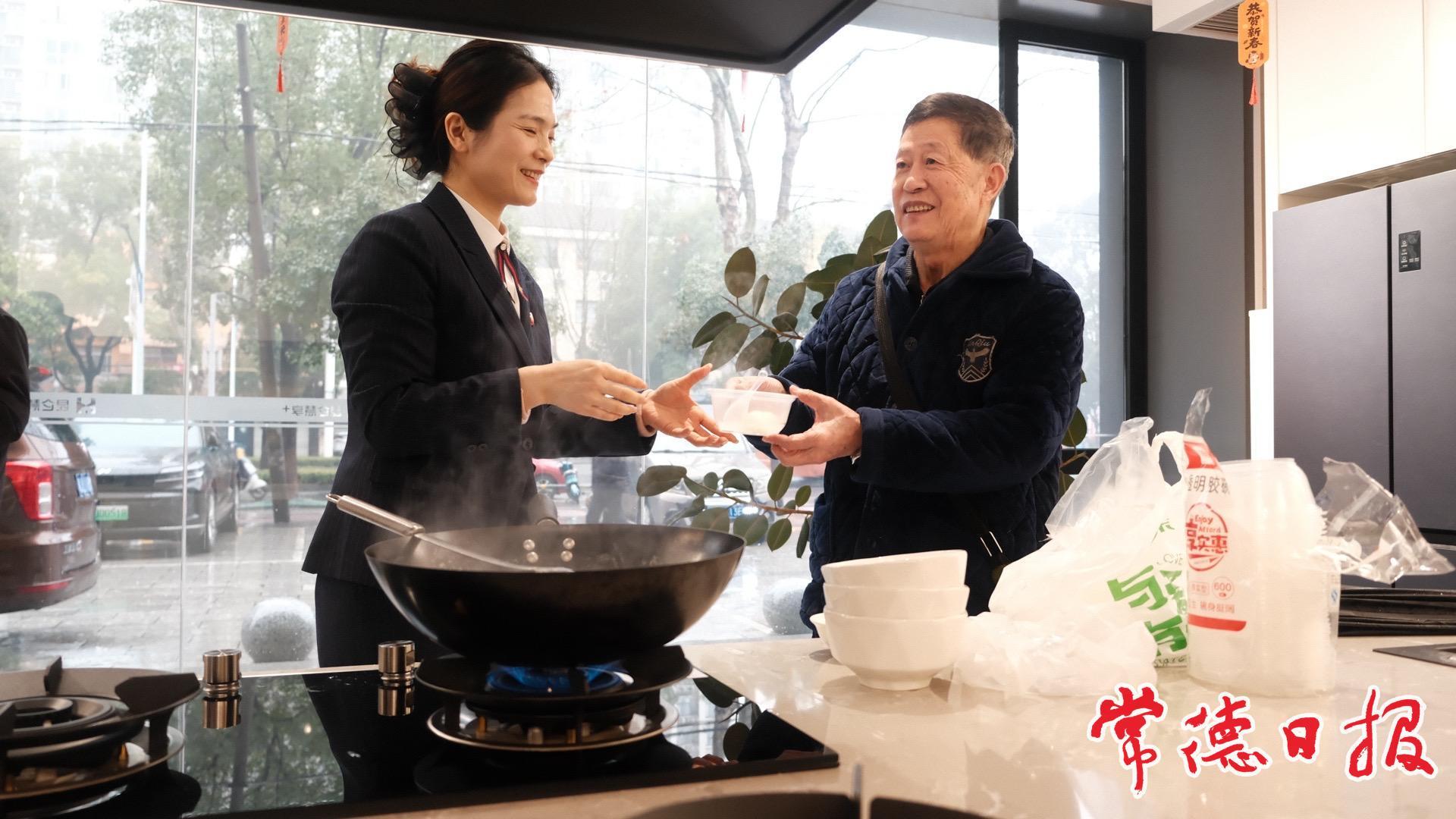 活动现场最暖心的场景,莫过于市民收获了一碗碗热腾腾的汤圆。“元宵节快到啦,快来尝尝咱们刚煮好的汤圆吧!”休息区里,工作人员微笑着为市民送上这份暖意融融的节日心意。