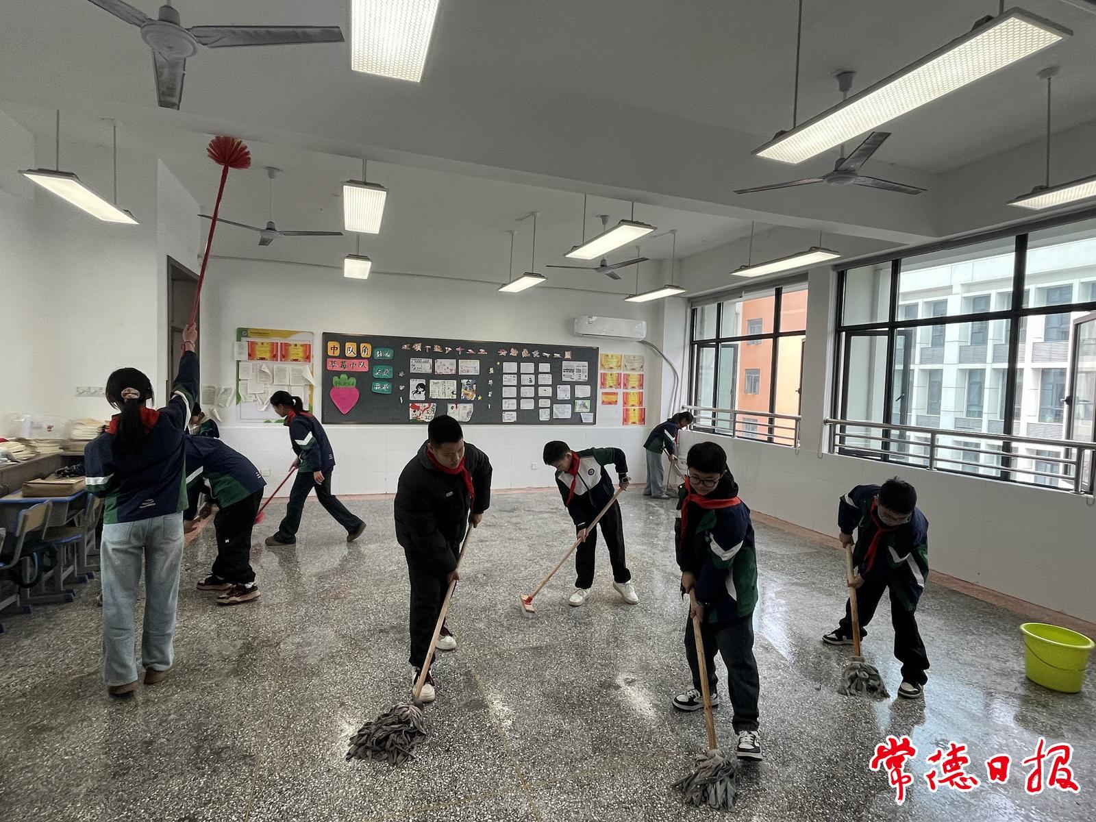 游园会余韵未散,“劳动课”火热开启。全校师生拿起抹布、扫帚,开启卫生大扫除。擦窗户、摆桌椅、扫地……孩子们干得热火朝天。高年级的学生更是主动搬运起了新书。“以前都是老师发书,今天我自己搬书,感觉特别有成就感!”一名六年级学生擦着汗水说。