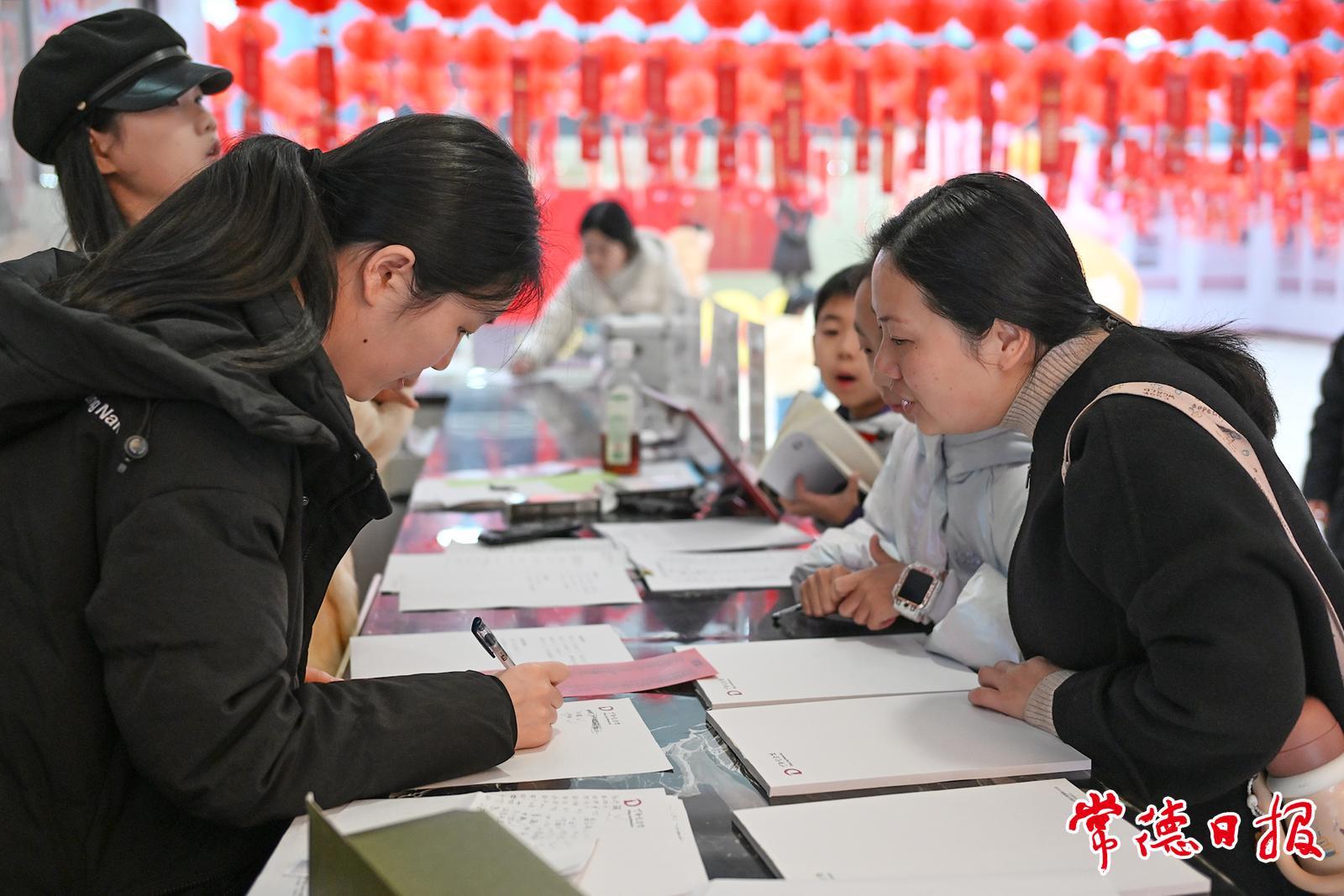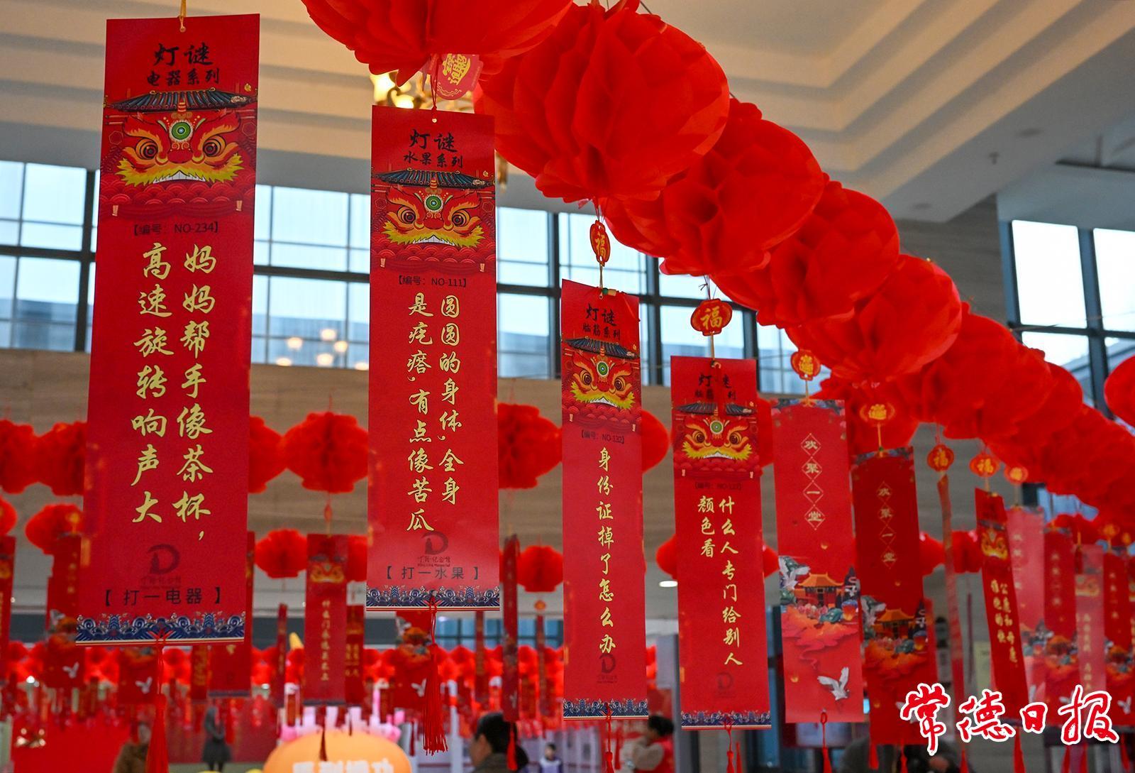 作为本次活动的“重头戏”,核心环节“谜海寻珍”区域精心准备了600余条谜语。这些谜面不仅涵盖了文学历史、民俗文化、常德本土风情,更特别融入了《中华人民共和国文物保护法》的相关知识。一条条构思巧妙的灯谜前,围满了或凝神思索、或恍然大悟的游客。大家或提笔记录,或手机查阅,在益智添趣的同时,潜移默化地学习了文物保护的相关知识。