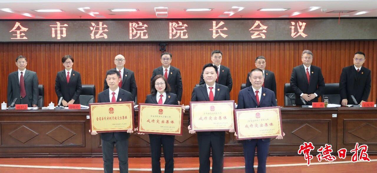 会上,石门县人民法院、津市市人民法院、桃源县人民法院三家基层法院院长现场述职,其他基层法院院长书面述职;会议为部分先进集体和荣誉天平纪念章获得者颁发了奖牌、纪念章和证书。会议指出,2025年,全市法院忠诚履职、担当实干,政治建设持续深化,服务大局精准有力,司法为民扎实有效,审判质效显著提升,队伍建设全面加强,各项工作取得新进展、新成效。
