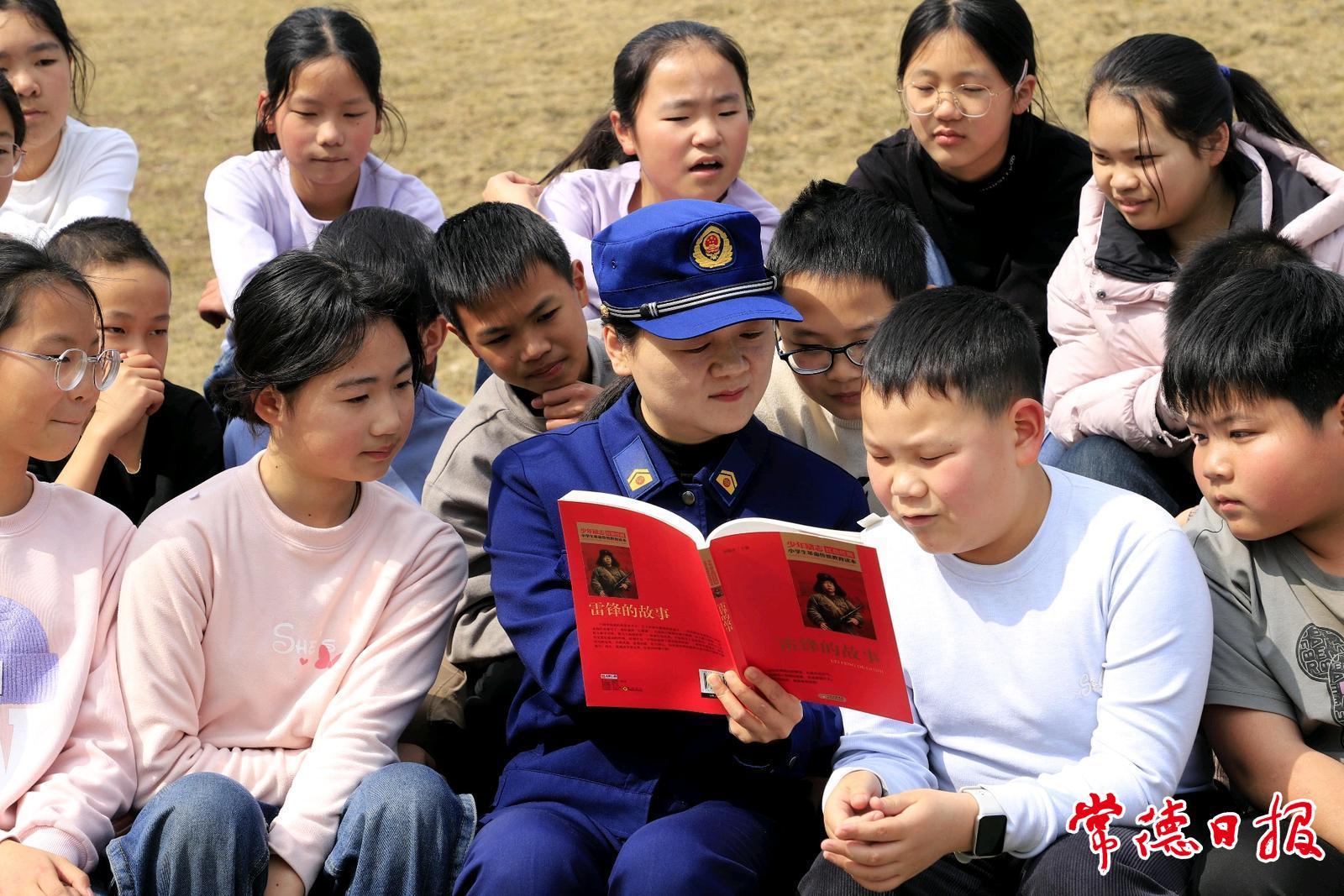 操场边,湖南省岗位学雷锋标兵李巧莲席地而坐,身边围拢着一群孩子。她翻开那本已翻旧了的《雷锋的故事》,声情并茂地讲起来。