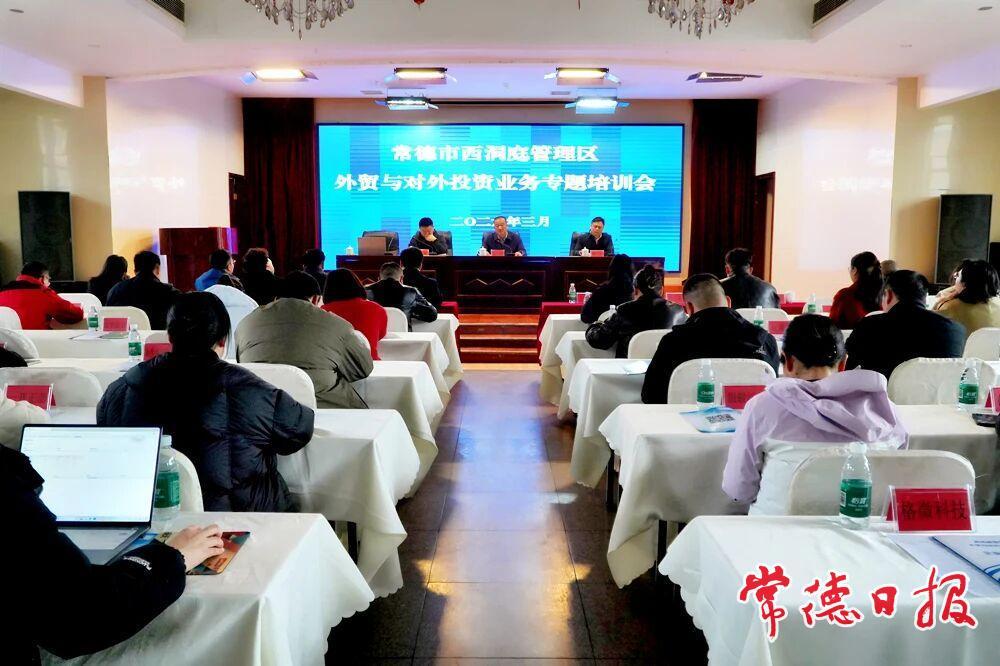 常德日报记者 杨荣国 通讯员 彭雅婷 文/图 3月6日上午,由西洞庭管理区商务局主办的常德市西洞庭管理区外贸与对外投资业务专题培训会召开,旨在贯彻落实全区民营经济发展暨招商引资工作会议精神,精准服务企业拓展国际市场、规范对外投资行为,助力开放型经济高质量发展。