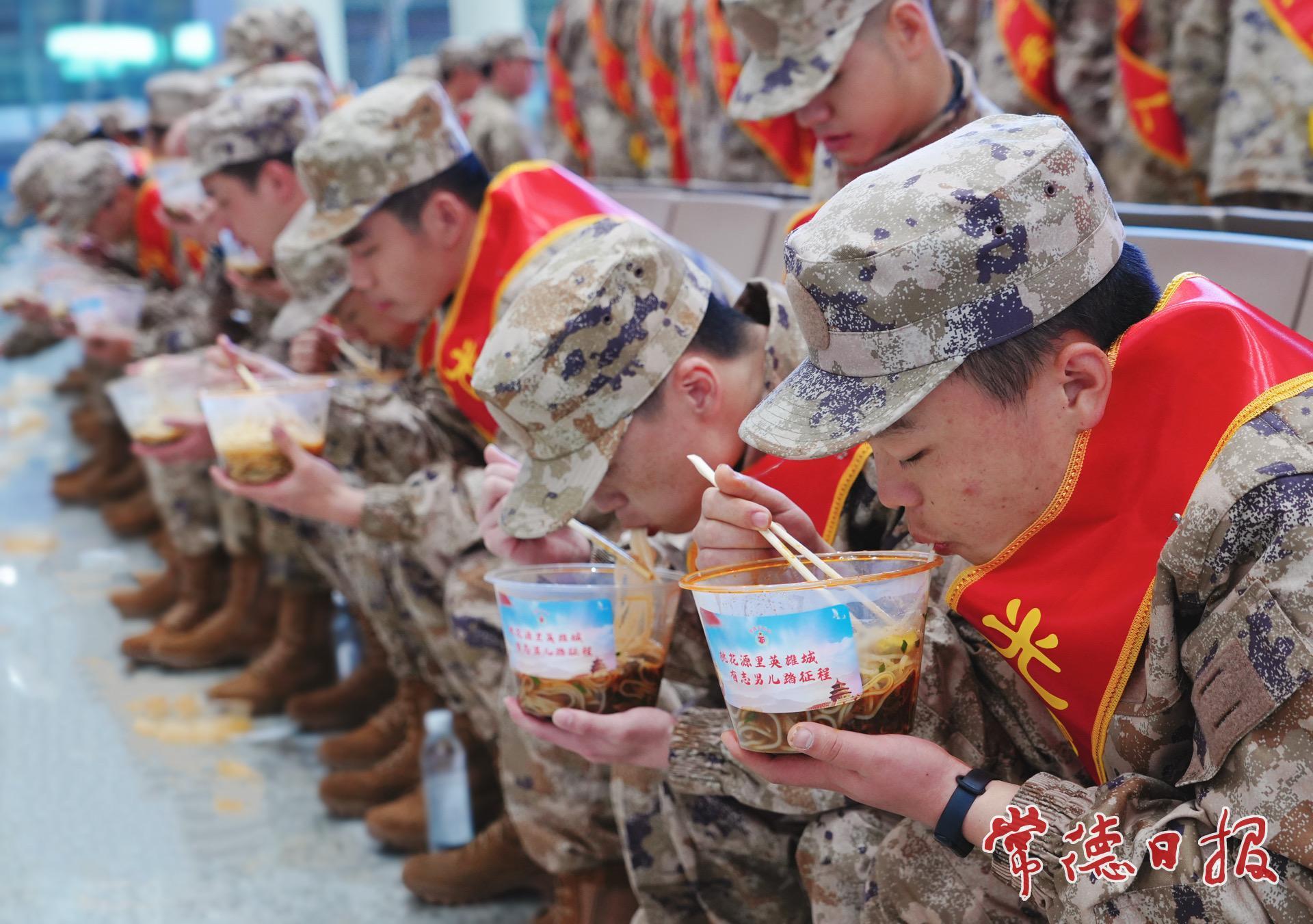为让新兵们带着家乡的味道和温暖启程,常德军供站精心准备了地道的常德米粉和满载关怀的军供礼包,用一碗热气腾腾的“乡味”和一份实用暖心的行囊,温暖了新兵的从军路。