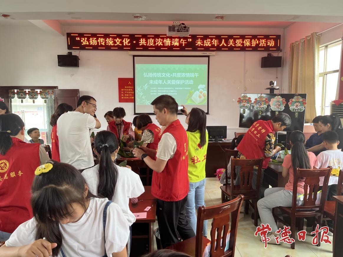 去年端午前夕,粽子飘香。武陵区丹州乡三湖村传来阵阵欢声笑语。志愿者联合市社会救助事务中心、市恒德社会工作服务中心,在这里开展“弘扬传统文化,共度浓情端午”未成年人关爱保护活动。