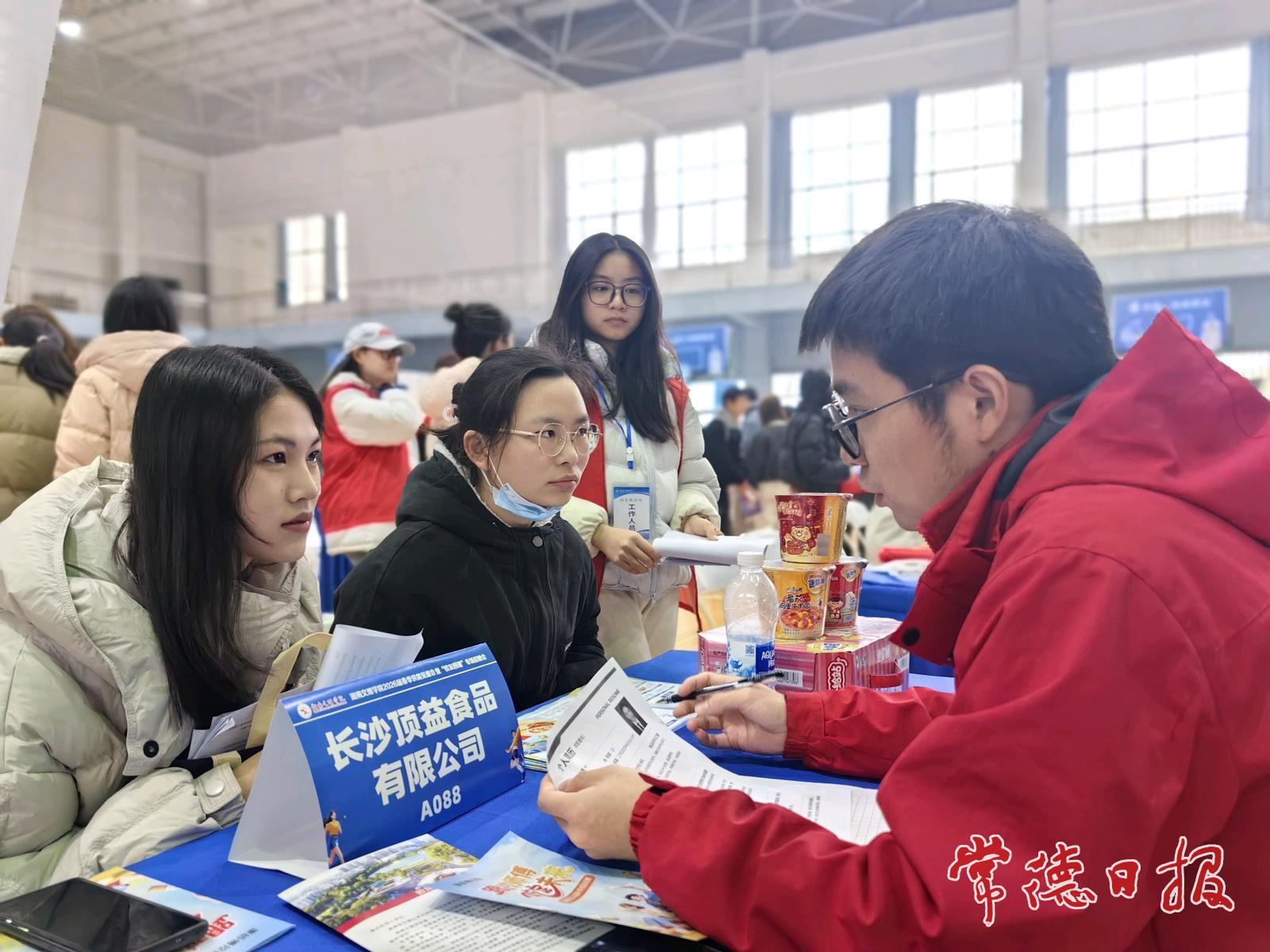 招聘现场,各企业纷纷亮出“杀手锏”,拿出了十足的诚意。“我们这次带来的岗位薪资从4000元到上万元不等。”在常德云港生物科技股份有限公司的展位前,人事负责人章斌正热情地向学生们介绍岗位。展台上,外贸业务员、微生物检测员、食品研发员等岗位介绍资料一字排开,清晰地展示着企业的用人蓝图。不到一个小时,桌上已摞起近20份简历。“毕业生的整体素质不错,我们已经物色到了几个非常符合要求的苗子。”章斌言语中满是欣喜。