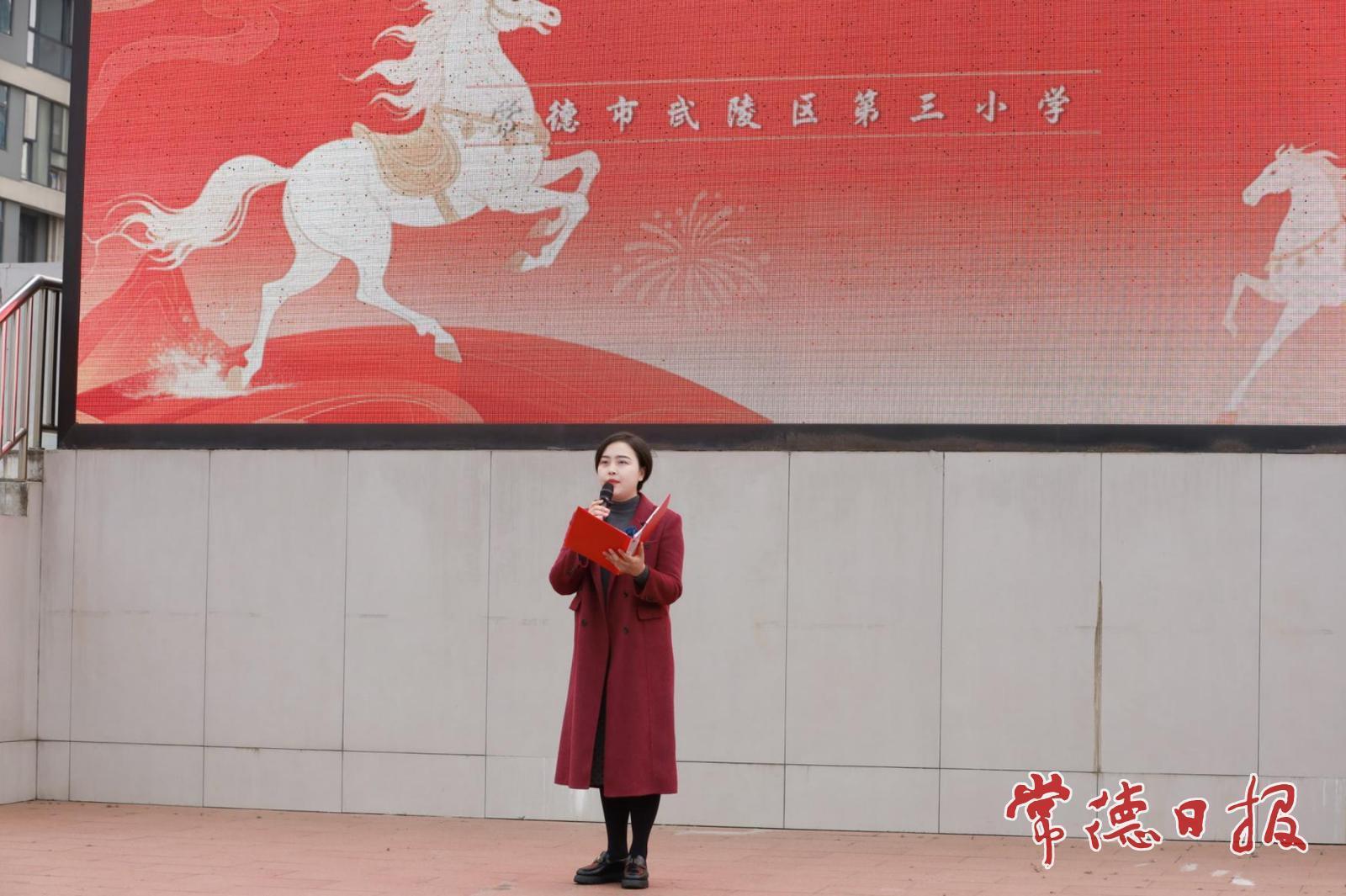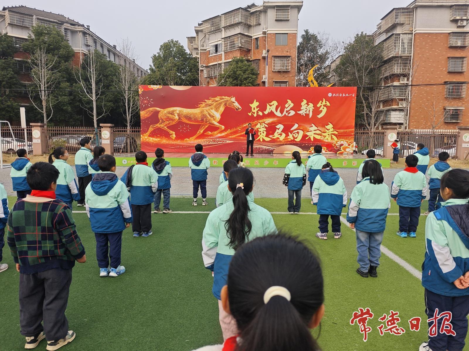 心有方向,行有力量。希望你们从小热爱祖国,升旗仪式上庄严敬礼、唱响国歌;从小树立理想,把梦想藏在心里,落实在每天的学习中,一步一个脚印,向着未来勇敢前行;第二,做脚踏实地的“勤奋马”,肯吃苦、长本领。学习没有捷径,贵在坚持。课堂上专心听讲,认真思考;遇到难题不退缩、不放弃,勤学好问,把知识学扎实,用努力和汗水,书写属于自己的精彩;第三,做守规明德的“文明马”,懂规矩、守底线。严守校园安全,文明游戏,不追逐打闹;尊敬师长,友爱同学,不说脏话、不欺凌他人,用一言一行,展现东风小学学子的文明素养。