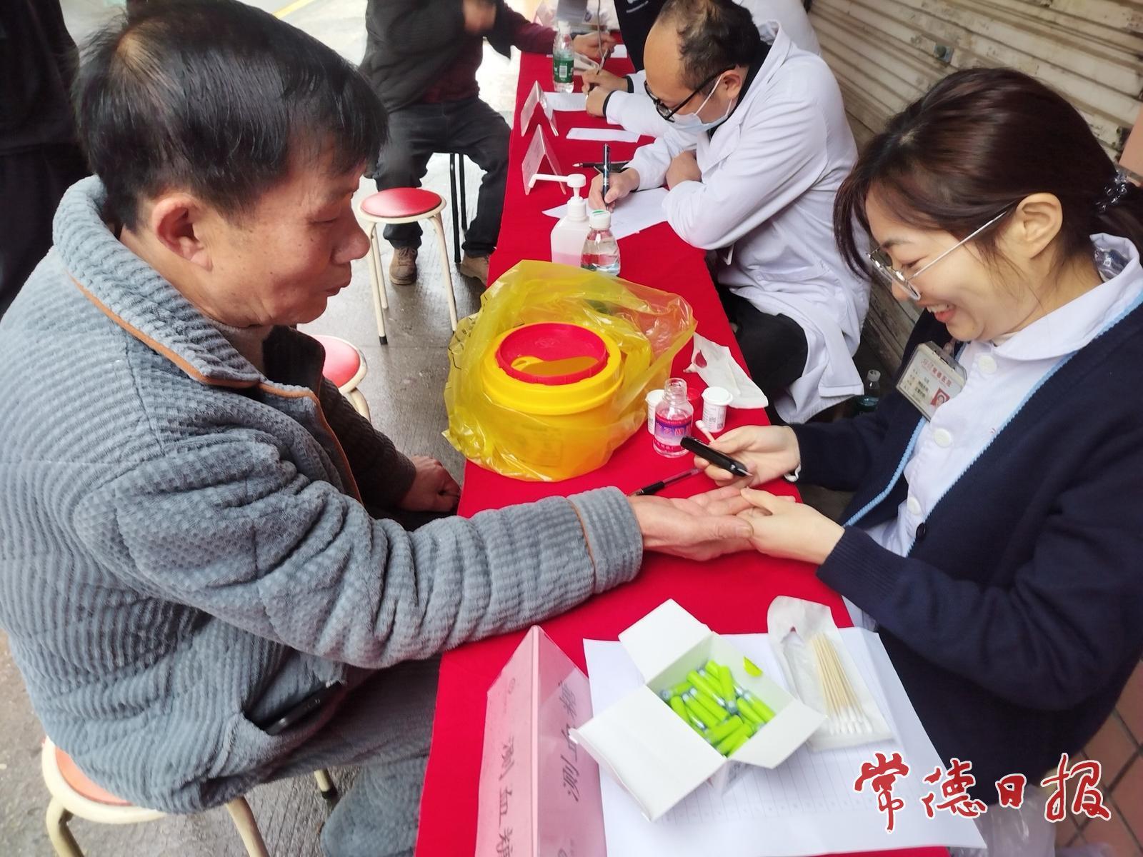 活动现场,来自湘雅常德医院的义诊团队,为居民提供免费血压、血糖检测,耐心解答高血压、糖尿病、关节疼痛等常见病的防治问题。医护人员细致询问病史、分析检查报告,并结合居民生活习惯给出个性化健康指导。社区工作人员提前通过微信群发布通知,温馨提醒居民携带既往病历、体检报告等资料,确保医生能精准研判、高效服务。