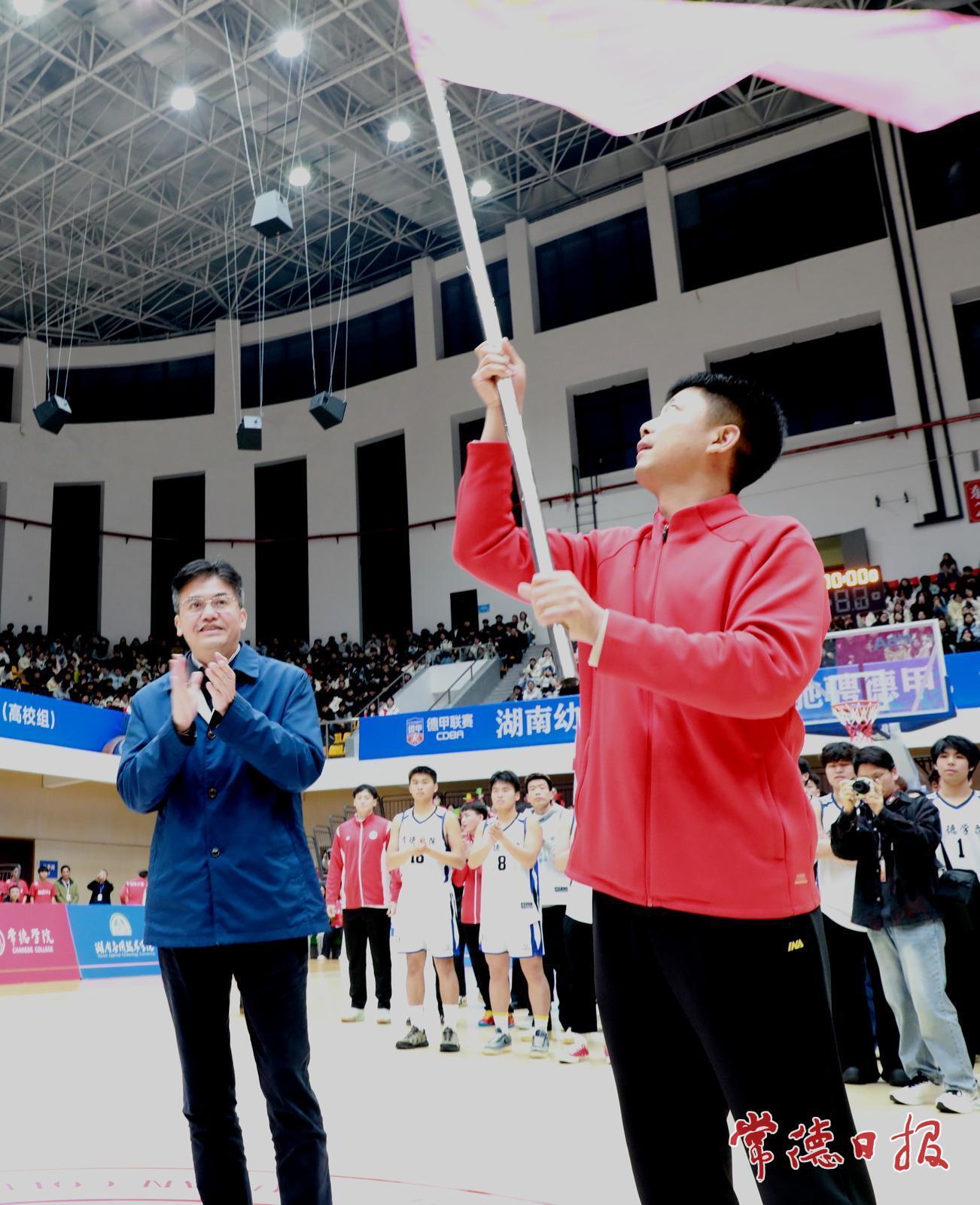 常德日报记者 姚瑶 王自来/文 李龙/图 3月23日晚,2026湖南省城市篮球联赛(“湘BA”)常德代表队出征授旗仪式暨2026常德市甲级篮球联赛(“德甲”)高校组开赛仪式在湖南幼儿师范高等专科学校体育馆举行,标志着常德高校篮球赛季正式拉开帷幕,也为即将代表常德征战“湘BA”的篮球健儿们擂响出征战鼓。市委书记罗毅君出席活动并授旗。