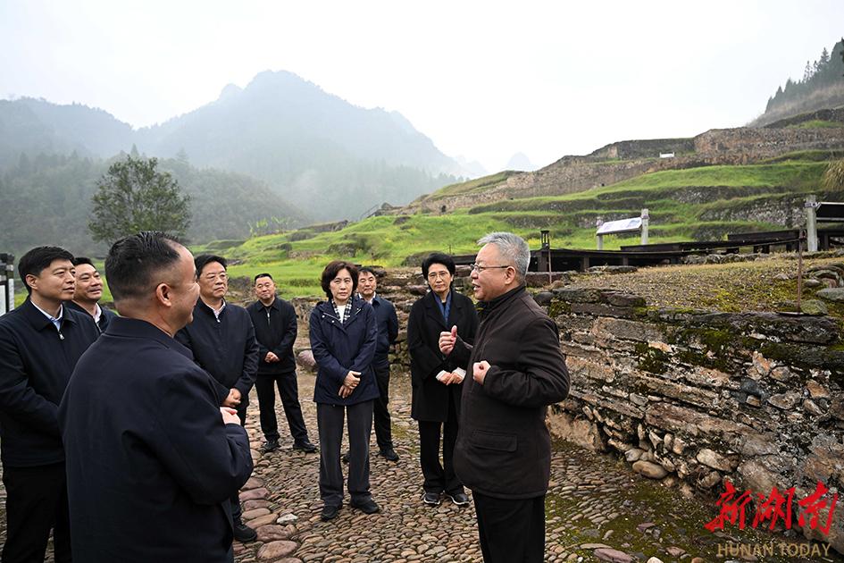 来到吉首大学,沈晓明察看化学化工学院、黄永玉艺术博物馆、沈从文纪念馆和里耶秦简研究院,了解人才培养、学术研究、文物典藏保护等情况,鼓励学校紧扣发展所需推进学科专业优化布局,为服务地方经济社会发展作出更大贡献;发挥学科优势,加强文物保护、研究和活化利用,推动高校文化设施向社会开放共享。沈晓明还实地察看了永顺县老司城考古遗址公园,指出要统筹谋划“十五五”期间老司城遗址的保护与开发利用,推动农文旅融合发展。