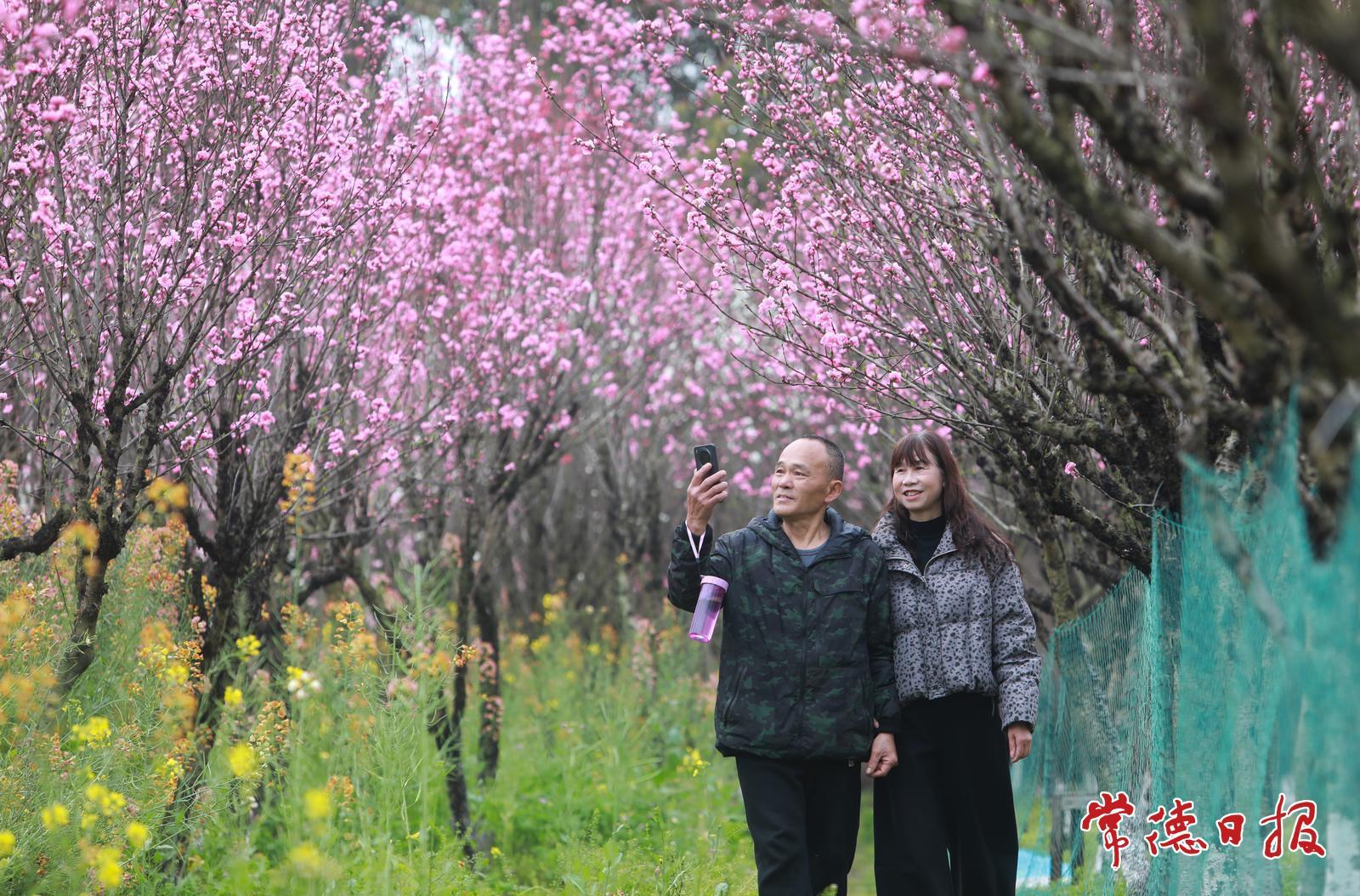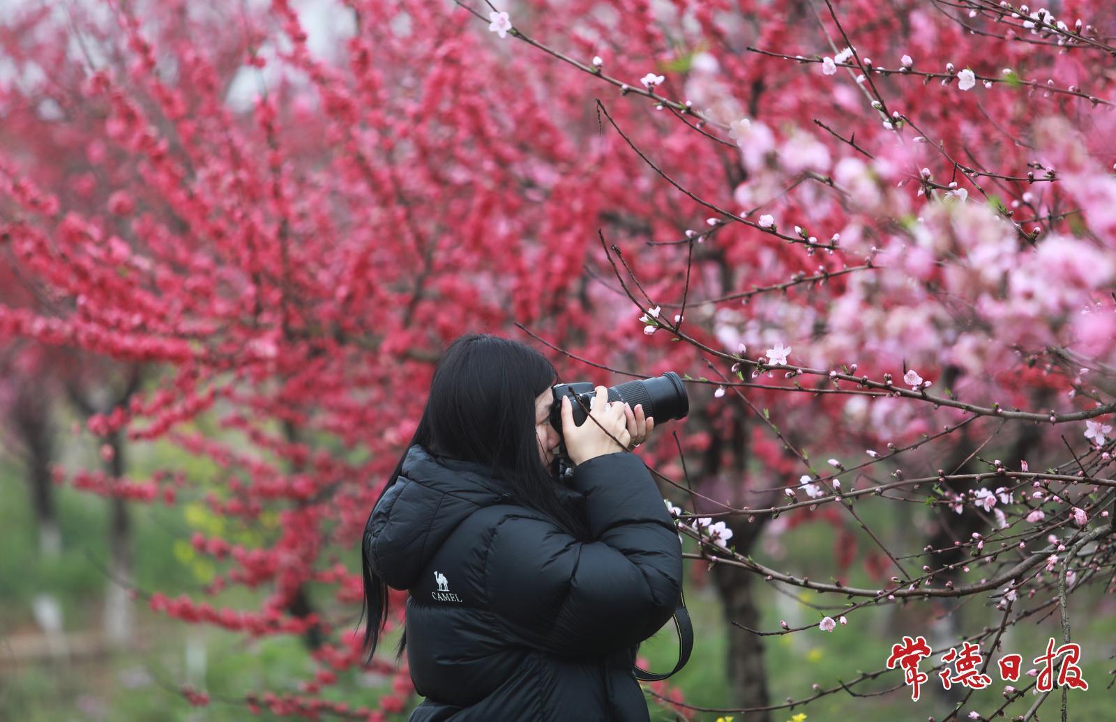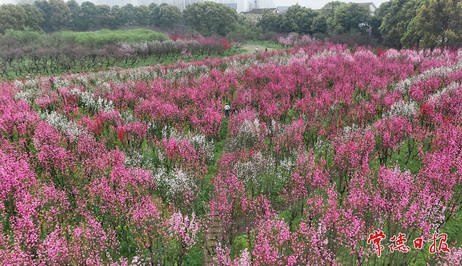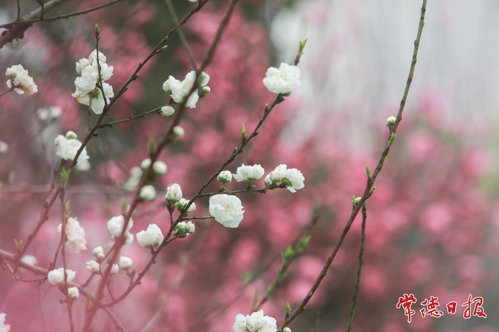 3月25日上午,常德职业技术学院桃花广场一派春意盎然的景象,部分区域的桃花已大面积绽放。