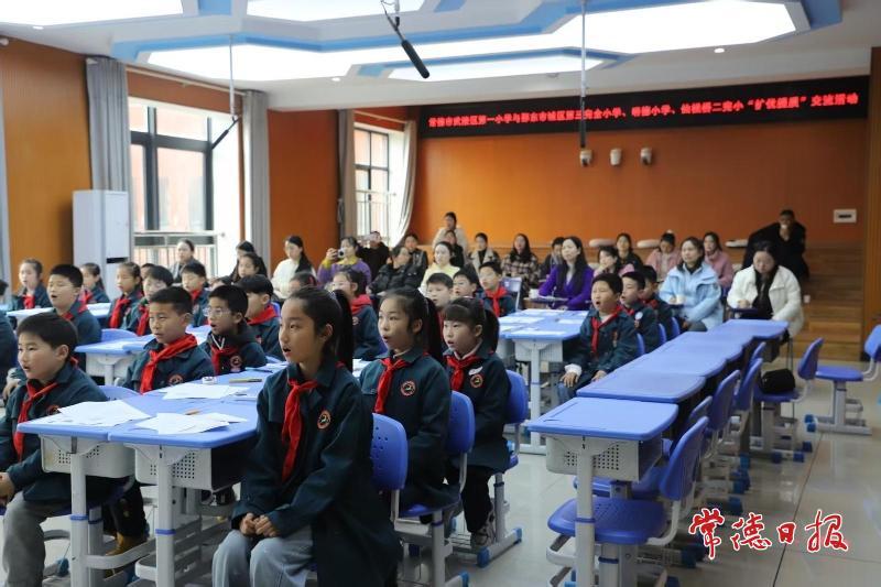 常德日报记者 黄云霞 通讯员 刘艳 李子月 文/图 近日,武陵区第一小学与邵阳市邵东市3所小学开展“扩优提质”校际交流活动,搭建起跨区域学习互助平台,实现优质教育资源共享。